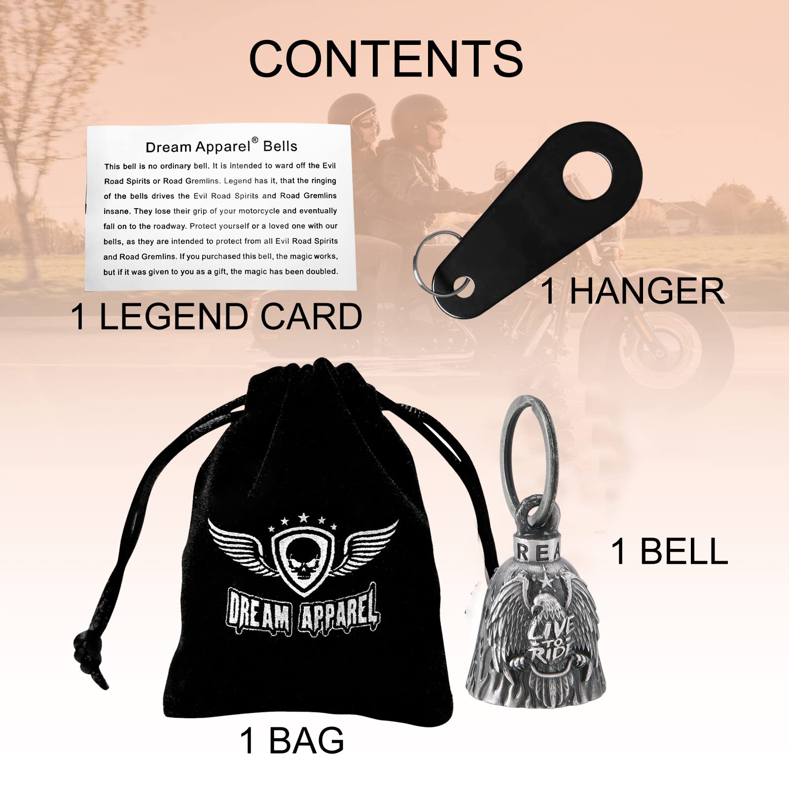 [Size] The motorcycle bell is 1.18 inch in diameter, 1.77 inch in height, and the clasp is 1.18 inch in diameter. The weight of the bell is 0.18 lb. You‘ll receive a motorcycle bell, a black hanger, a motorcycle bell legend note card, and a 2.75" x 3.62" velvet drawstring black bag. Various exquisite patterns are available according to your personal preferences.