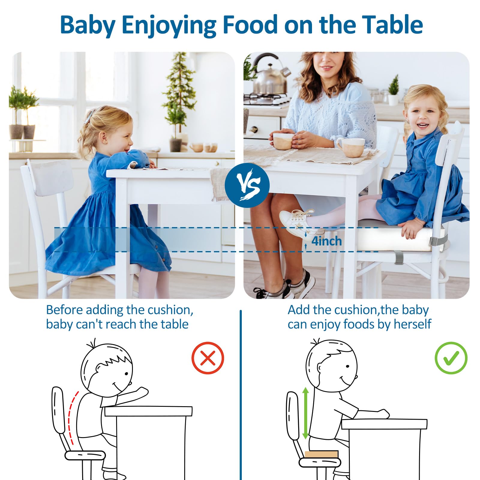 COMFORTABLE BOOSTER SEAT TABLE - The toddler booster seat dining table is made of high-quality PU synthetic leather and soft high-density memory foam,so booster seat cushion is very sturdy and not squashy.It can hold enough weight prevent from sinking down,makes little one enjoy the meal more comfortable