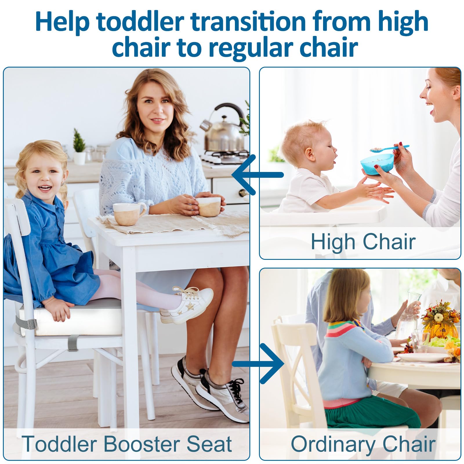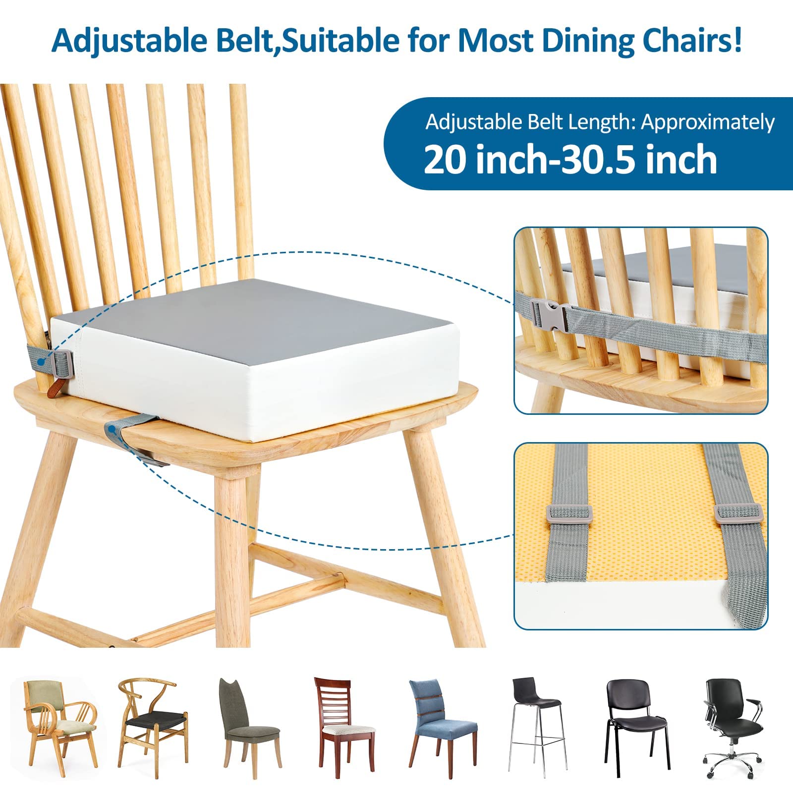 SAFE & NON-SLIP BOOSTER CUSHION - The booster seat dining has two adjustable seat belts,which can firmly fix the booster seat cushion to the chair from the bottom and back,the bottom of booster is made of non-slip silicone,so that booster seat dining is not easy to slide,ensure the safety of kids when eating on the table.The extend length of two adjustable seat belts is 20 inch-30.5 inch,so it is suitable for most dining chairs