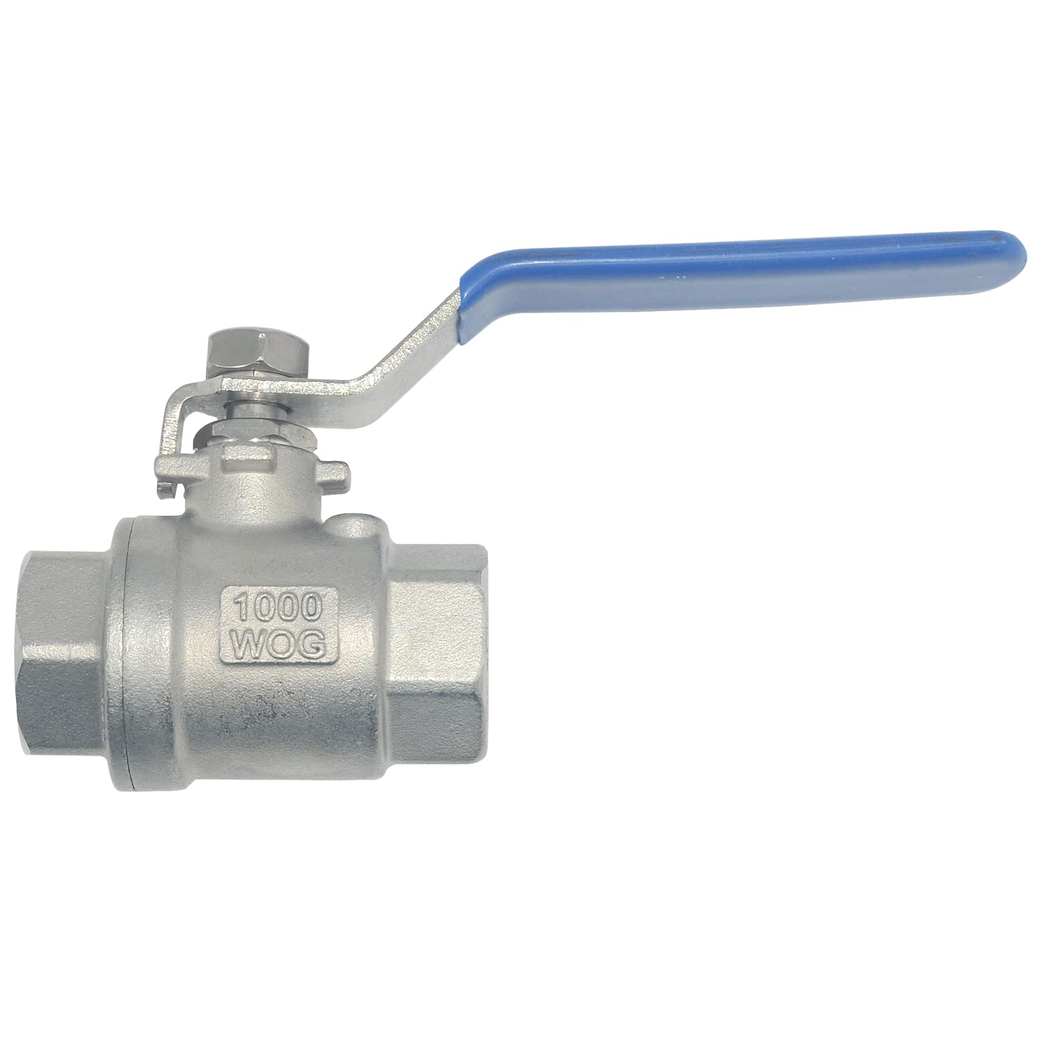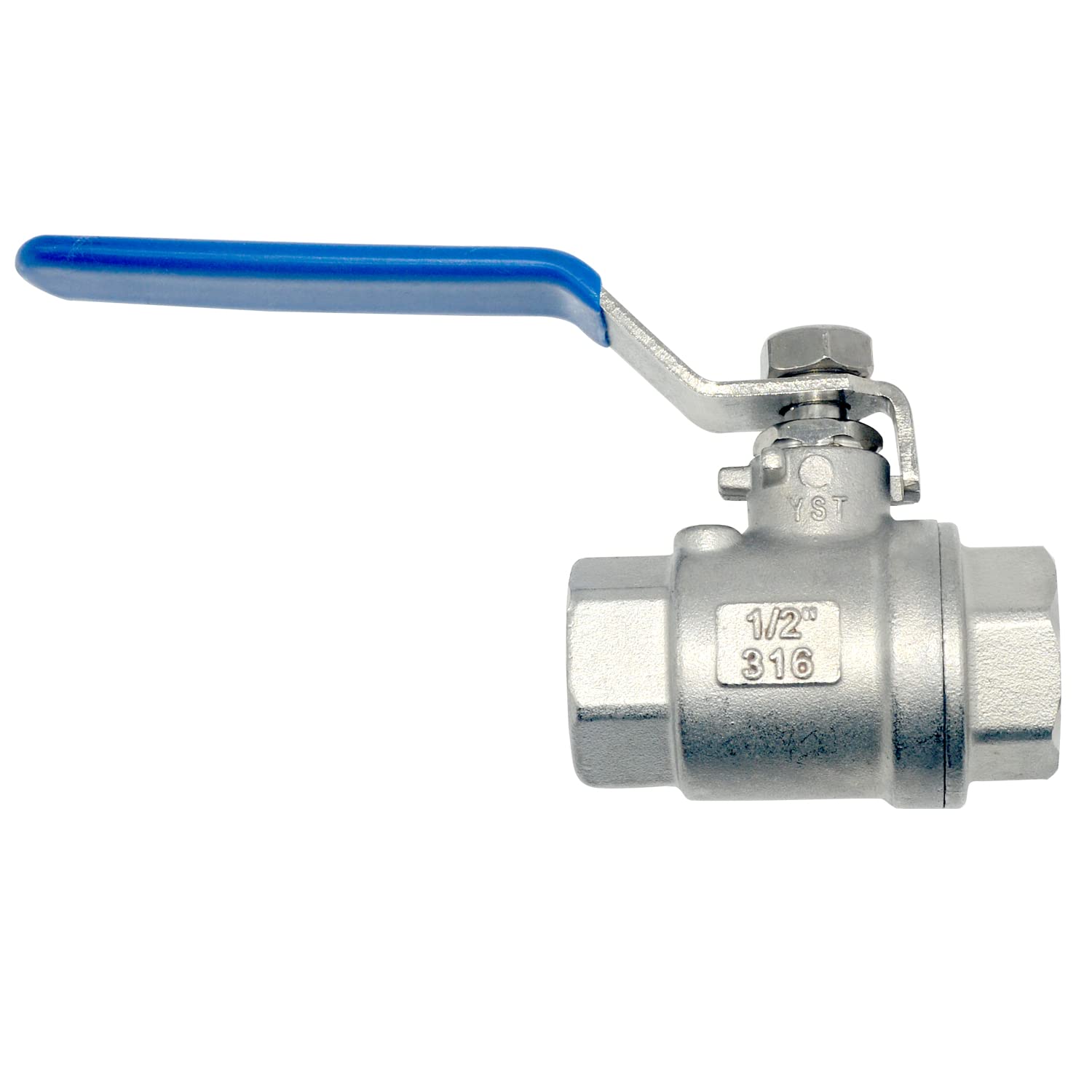 This ball valve is made of Stainless Steel 316 and has a plastic-covered lever handle for on/off manual control