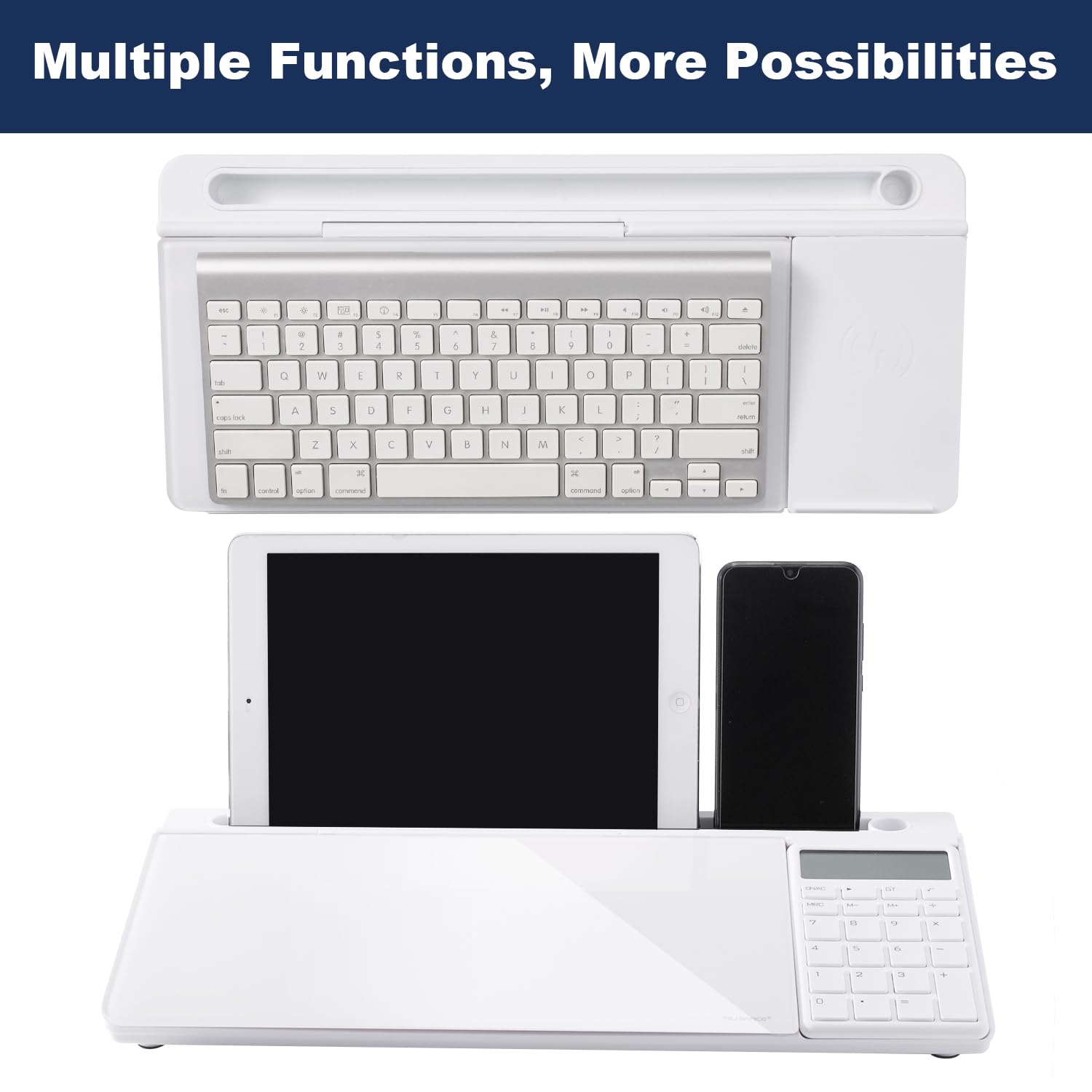 PERFECT DESIGN: Maximize your work area. The desktop whiteboard is designed to sit perfectly between a keyboard and monitor and is slope angled for comfortable reading and writing, or typing when you are using it as a keyboard stand.