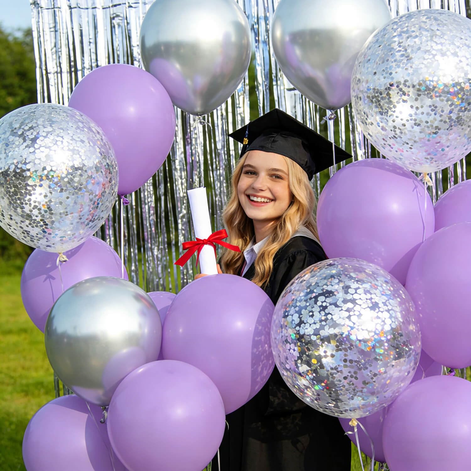 Order pastel purple ballons you will get 110pcs 12 inch pastel purple baloons and 2 rolls of ribbons in random colors.