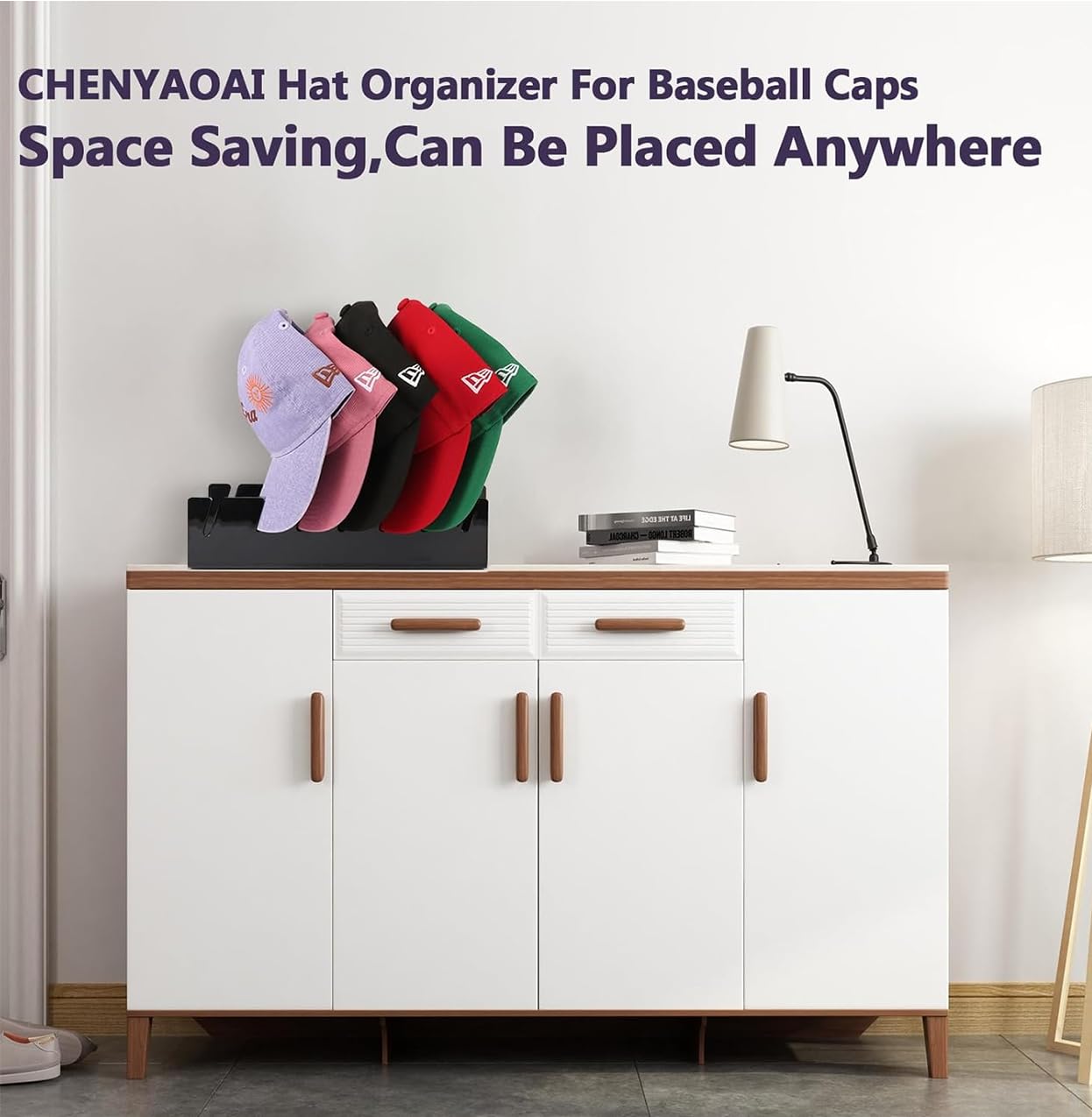 【Space Saving& Safe Design】The CHENYAOAI hat racks fit conveniently on any shelf or tabletop and require no extra space, allowing you to make the most of any limited space easily. At the bottom of the racks, there are clear rubber feet, helps the rack keep in the place.