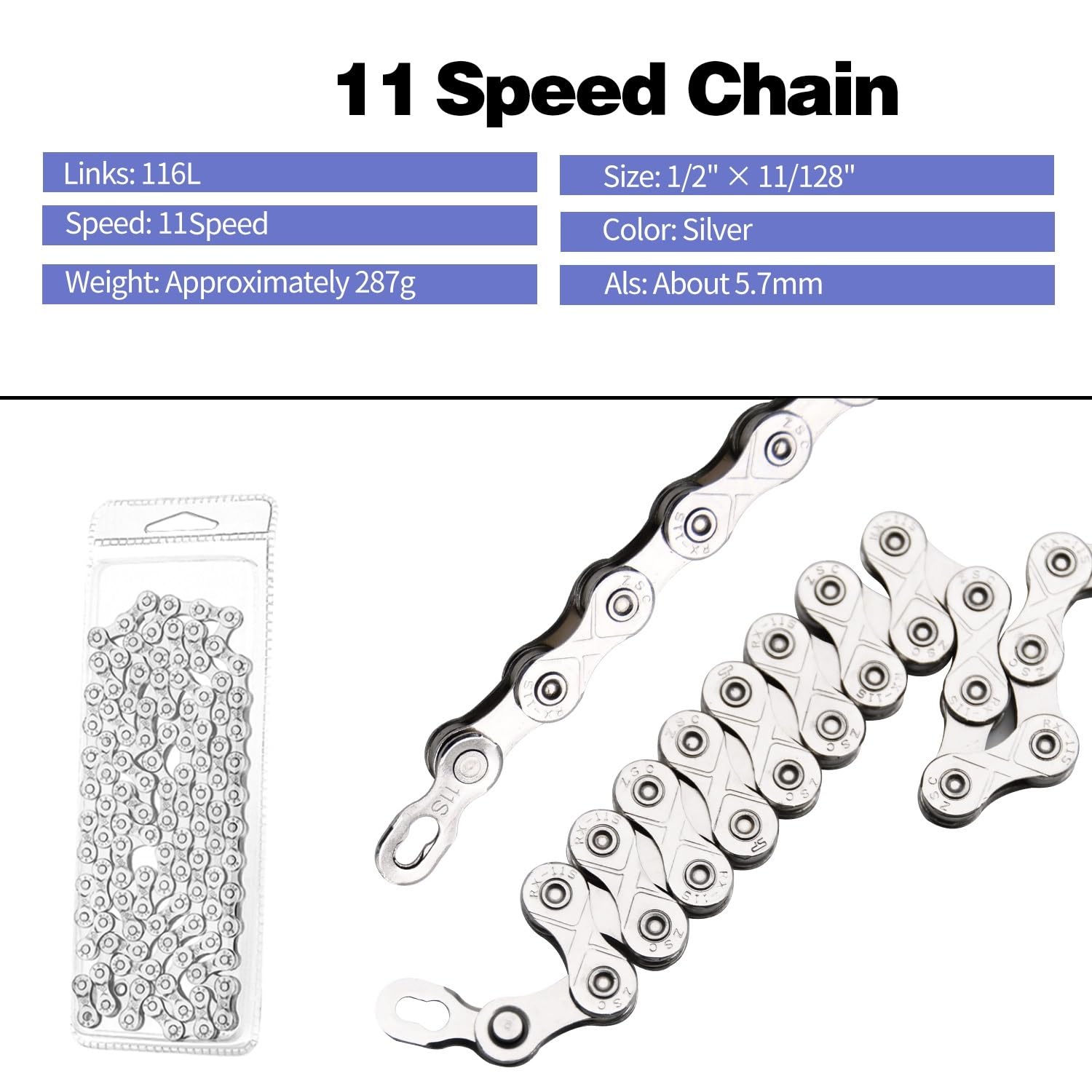【Package Includes】- The kit includes 1 set 11 speed chain, 1pcs bike link plier with hook, 1pcs chain breaker and 6 pairs of bicycle chain buckle, they are efficient, accurate matching and labor-saving.