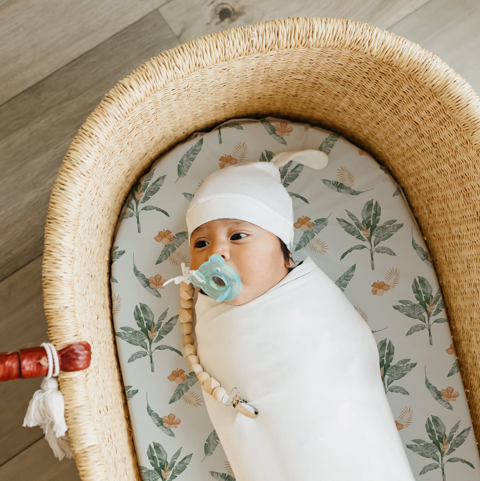 UNIVERSAL FIT BASSINET SHEETS FOR ALL CRADLE MATTRESSES:Our bassinet sheets are designed to fit all bassinet mattress pads, including oval, round, rectangle, and hourglass shapes. Whether you’re using a bedside sleeper, Moses basket, or standard bassinet, these bassinet sheets feature stretchy elastic edges for a snug, secure fit that won’t slip or bunch.