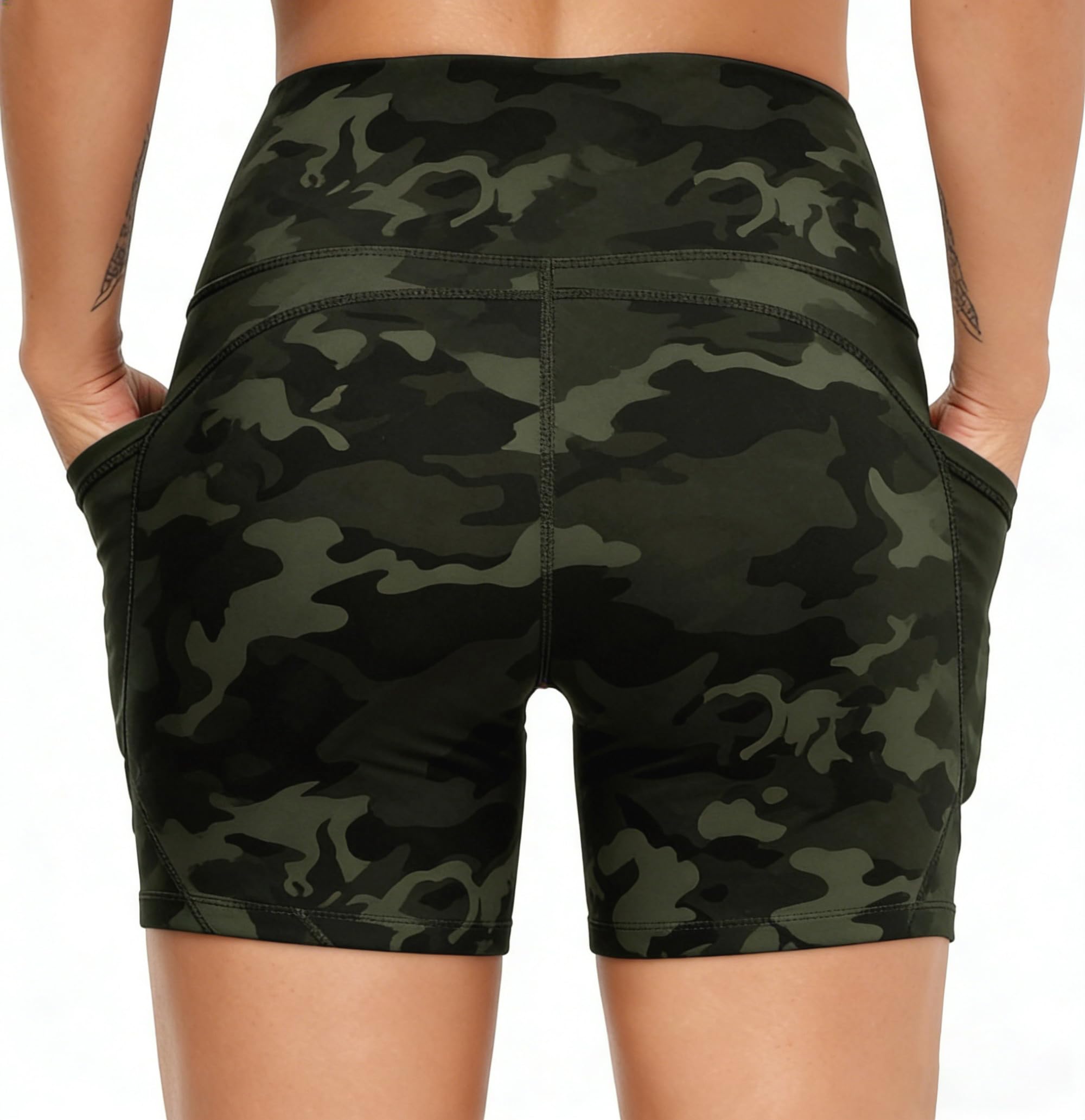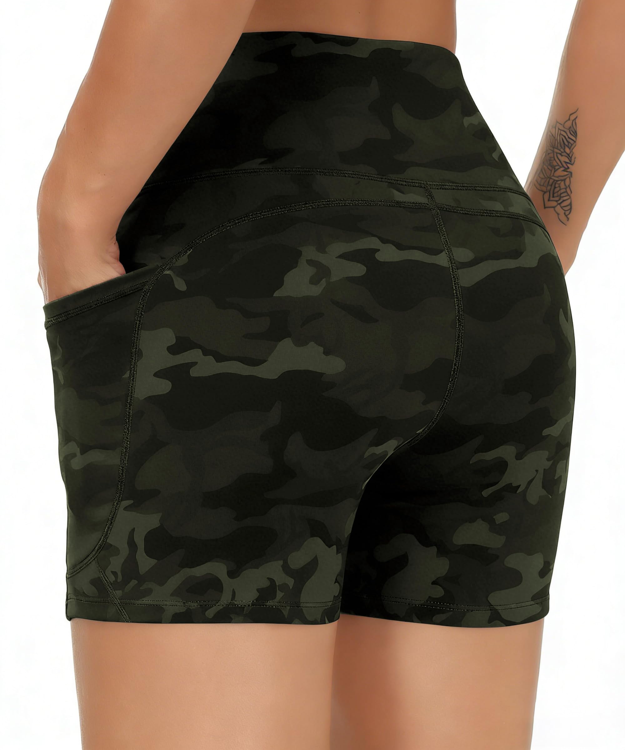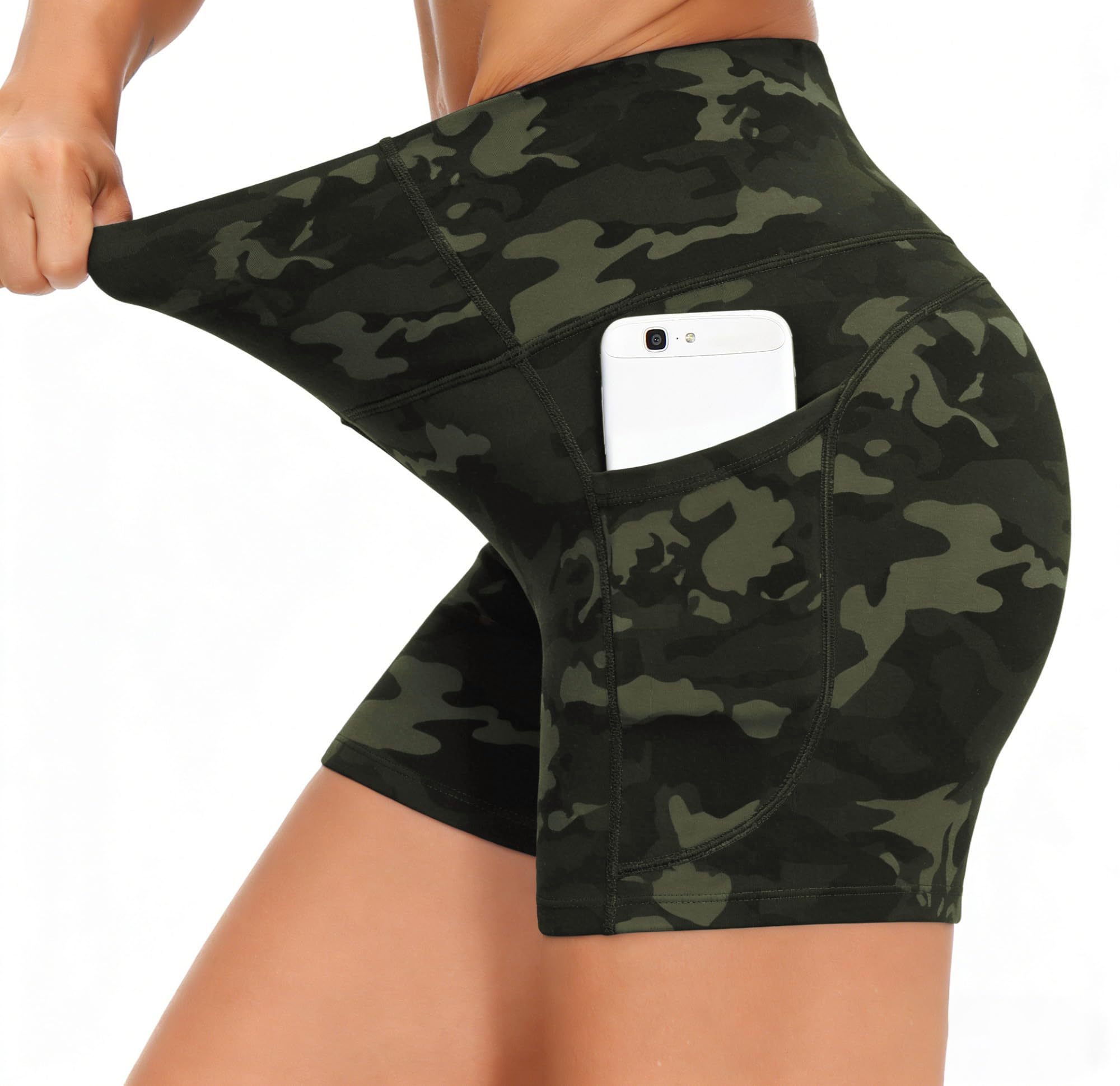 [Keep Perfect Shape] - High-waisted style with tummy control design. Wide waistband contours body curves and streamlines shape help to promote yoga shorts both compression and support.