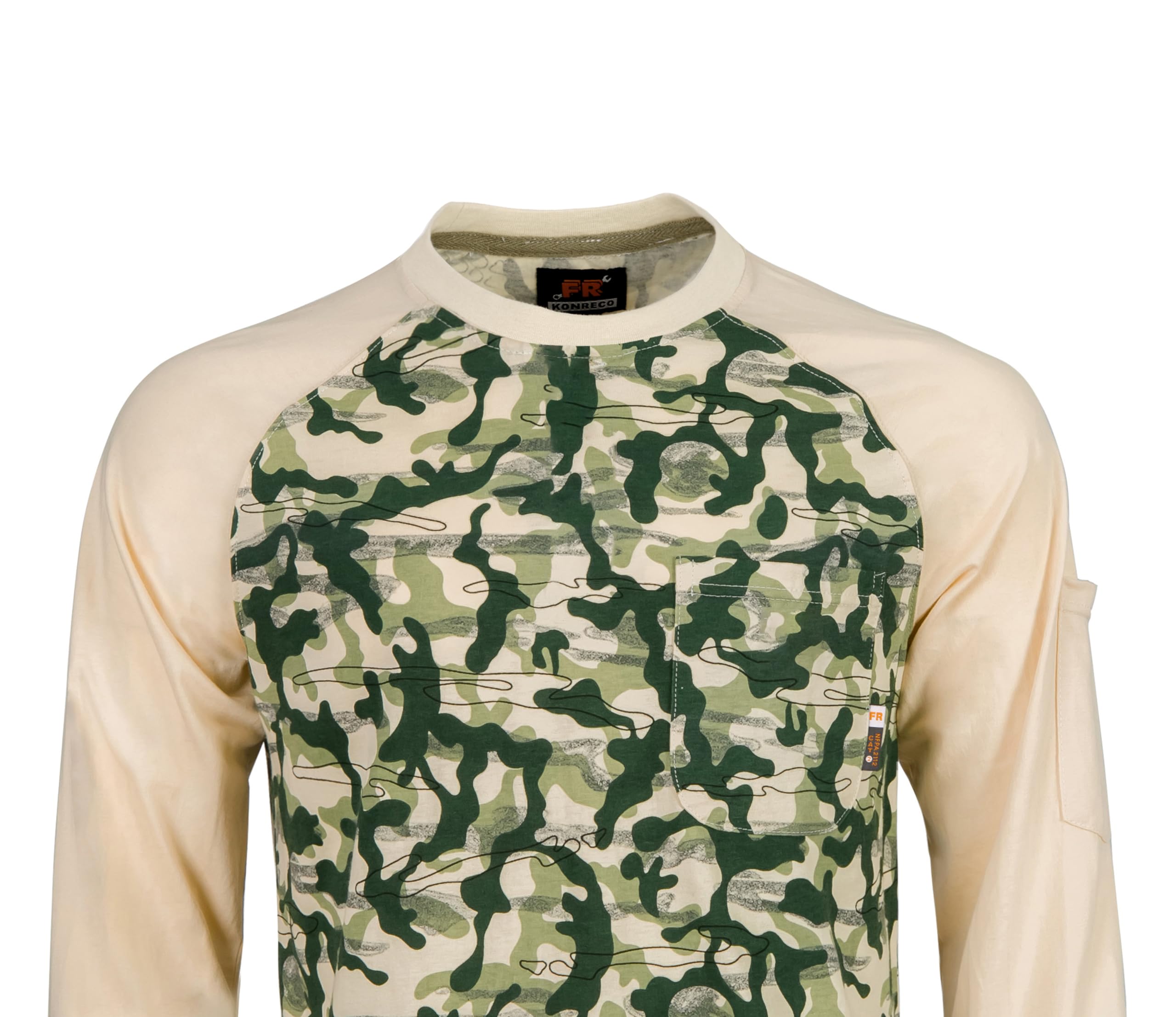 [Applied Design]Preshrunk & Pre-washed,Machine Washable.Classic crew neck style with one chest pocket and one sleeve pocket for your convenient storage of small stuffs.Rib-Kint collar and cuffs.Our FR shirt provides you a more comfortable dressing experience.