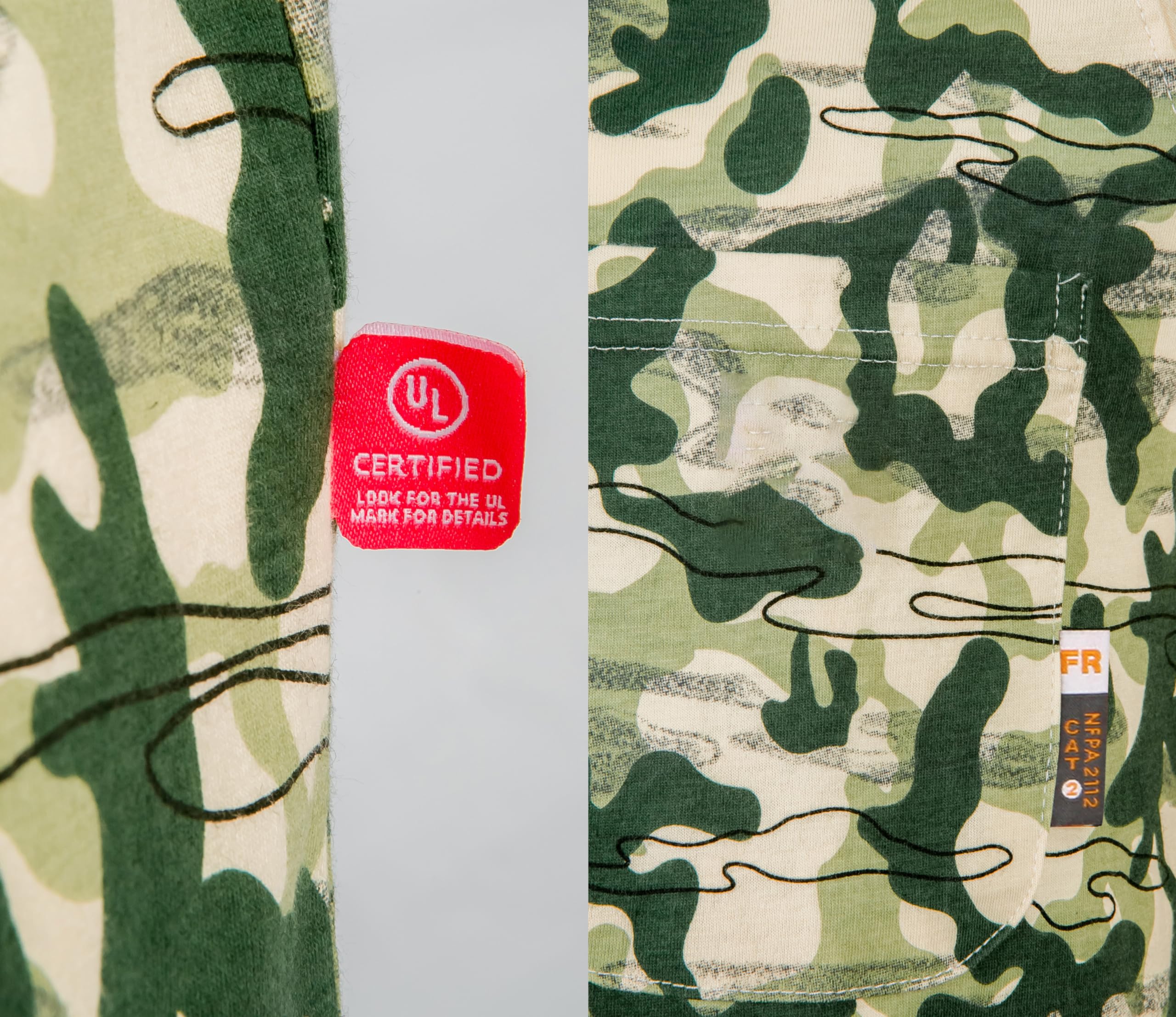 [Authoritative Certification]There is a FR tag on the pocket of the shirt and a UL tag on the inseam.The product will come with a sample of the shirt fabric,which you can use to test its FR properties with fire or to sew the shirts after minor damage.It is certified by UL to comply with ASTM1506,NFPA70E,and NFPA2112 standards.
