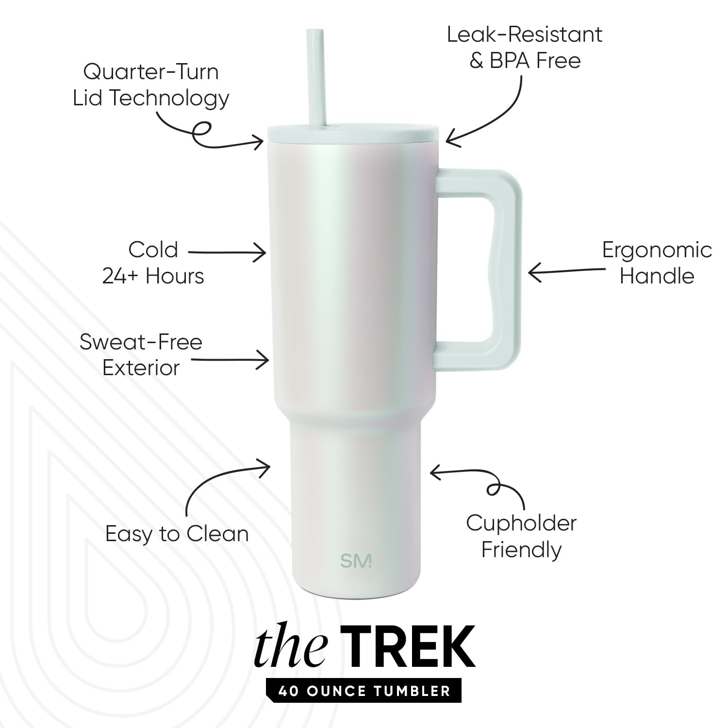 The Simple Modern Trek Tumbler is double walled and vacuum insulated to keep your drink hot or cold for hours. The cup is outfitted with an ergonomic handle, that is aesthetically designed for comfort. It comes with a straw lid and two straws so you can enjoy your favorite beverage on the go. The straw lid is four-way threaded to allow four different straw placements for your drinking hand preference. The Trek is made from 18/8 stainless steel and fits standard cupholders, and with a variety of color options, you can get an Emotional Support Water Bottle for whatever outfit or activity the day entails.