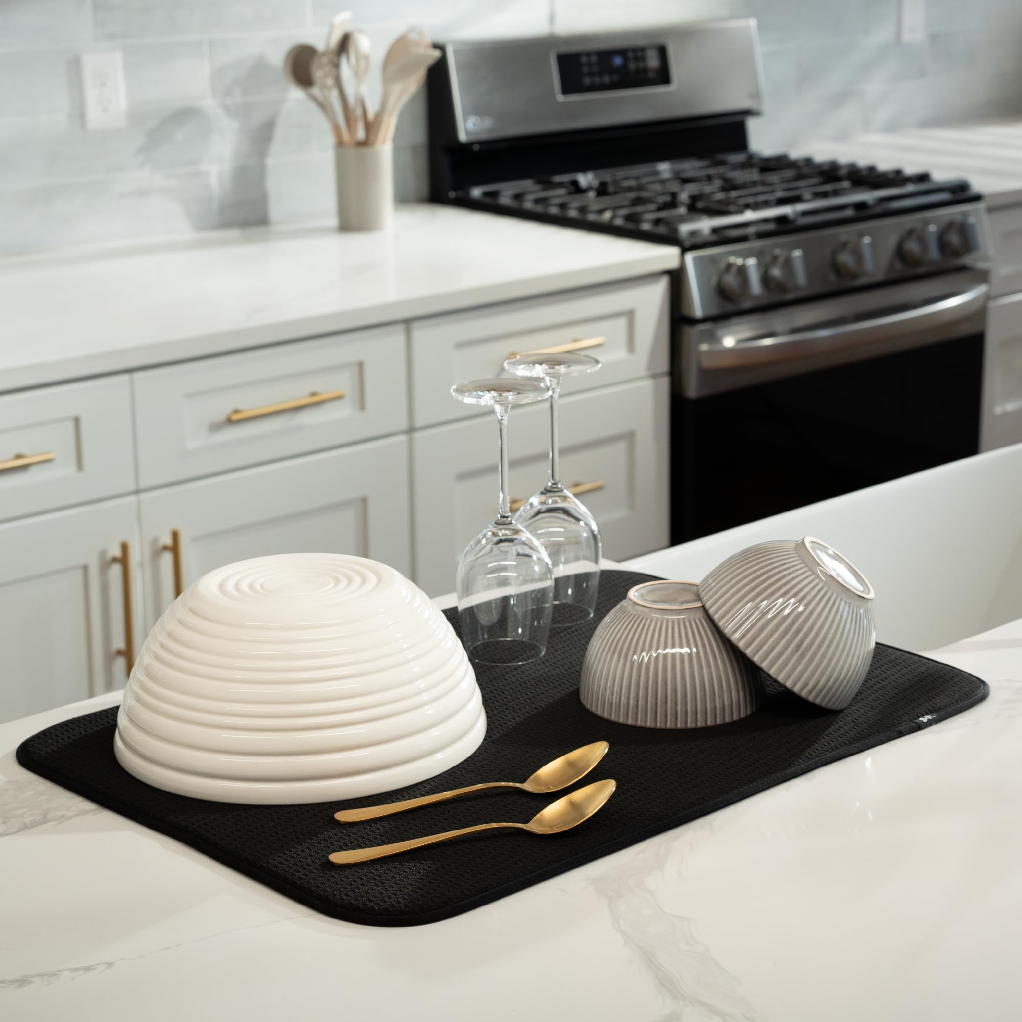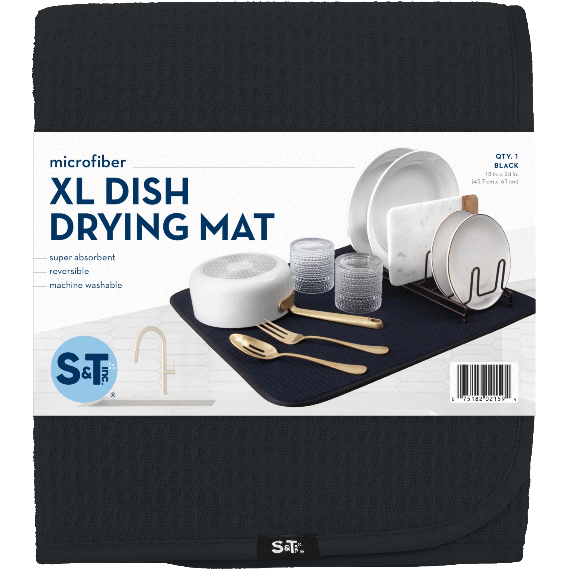 One S&T INC. Microfiber Dish Dry Mat XL measuring 18 in. x 24 in.; kitchen mat for countertop absorbs up to 4 times its weight in water to keep your countertop dry, unlike a silicone dish drying mat