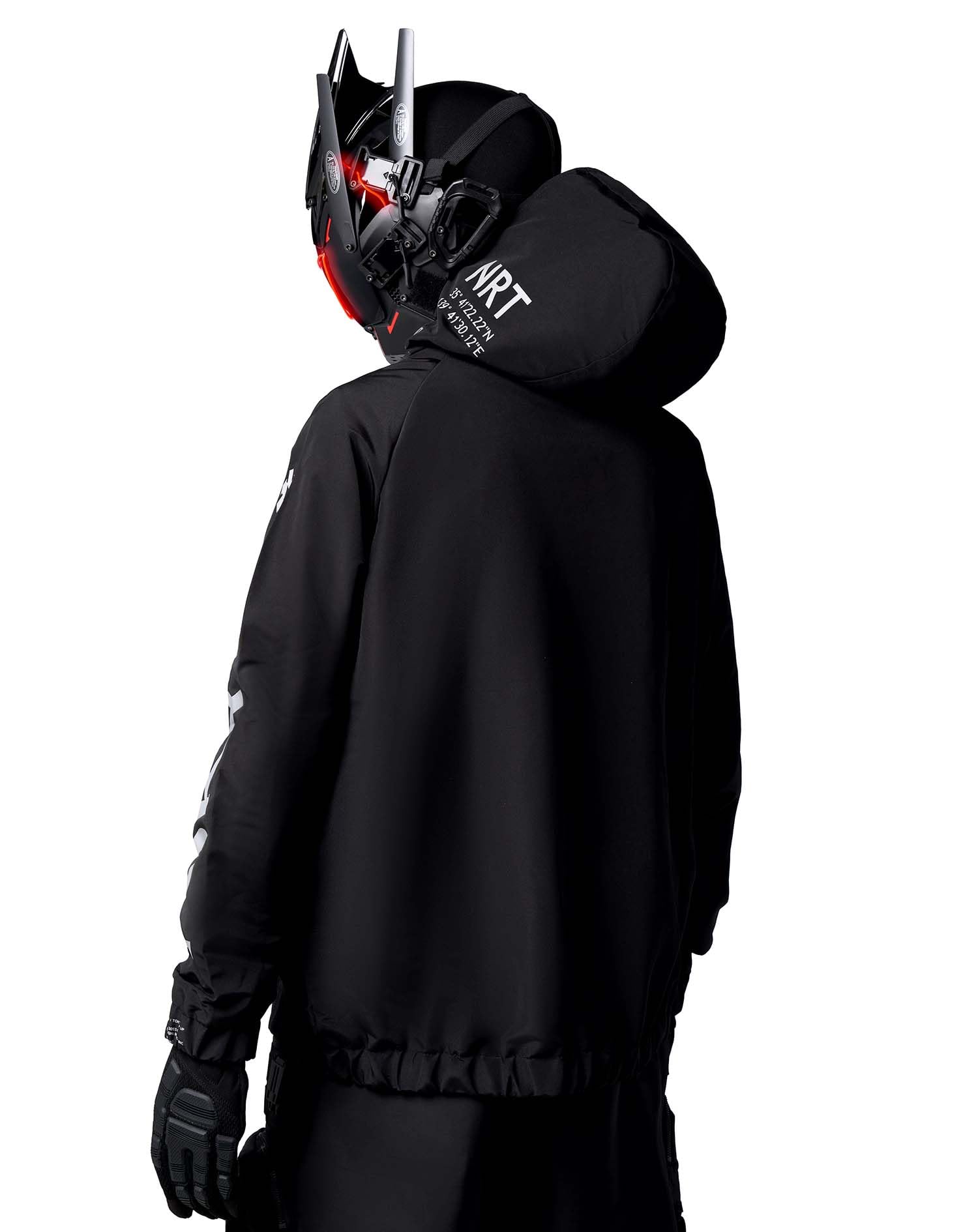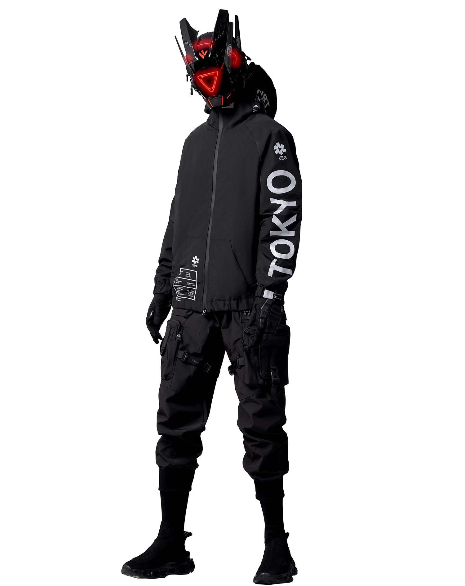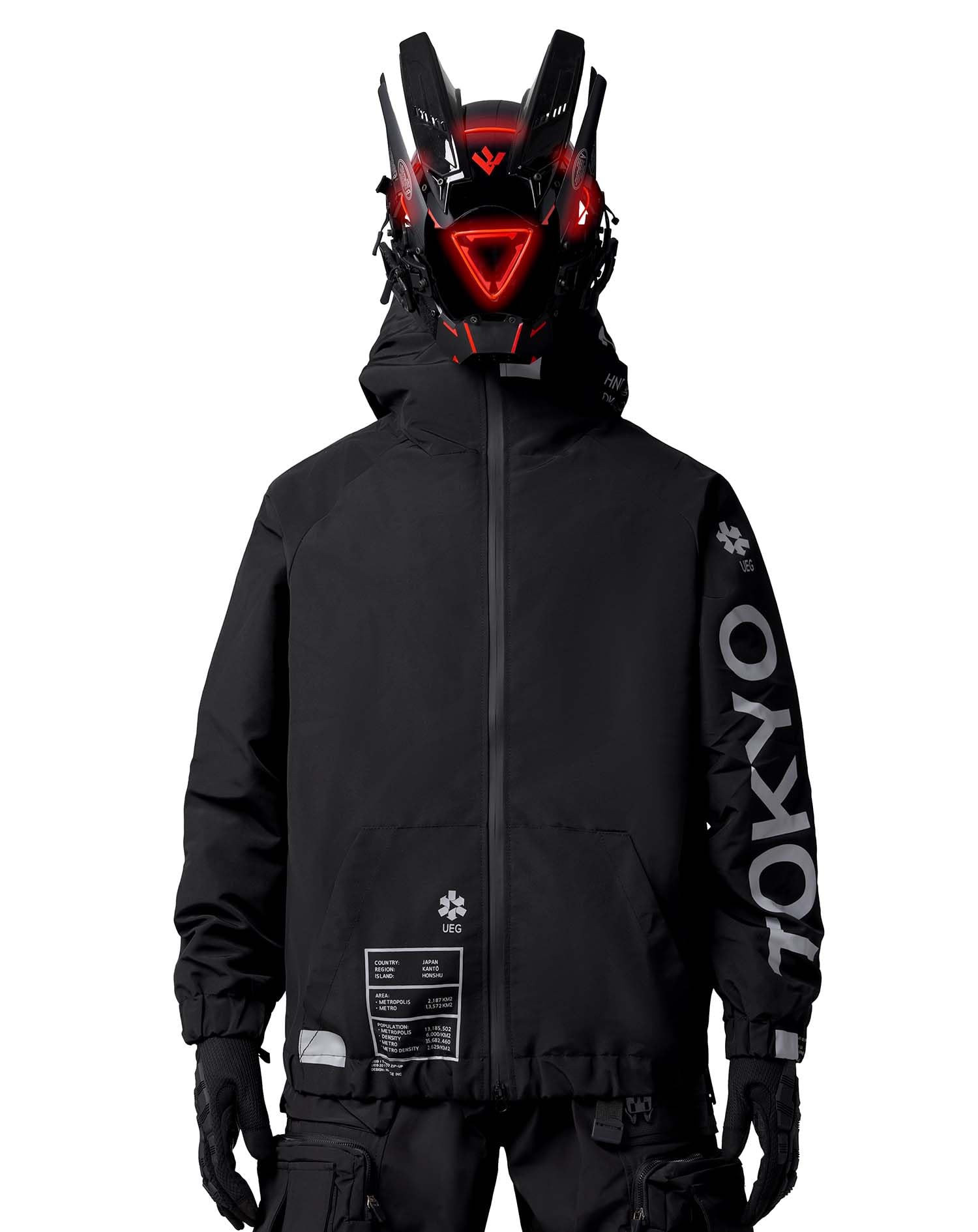 Description Techwear windbreaker with a relaxed and oversized silhouette. Made from durable heavy duty fabrication. Fitted with a high turtleneck hood to keep you warm in fall and winter. Finished with two slip pockets at waist. This jacket design is inspired by Japanese streetwear culture.