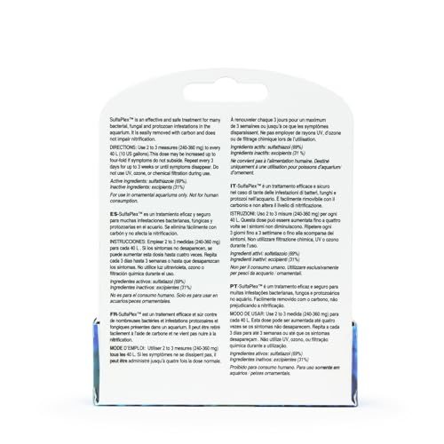 SulfaPlex (formerly Sulfathiazole) is an effective and safe treatment for many bacterial, fungal and protozoan infestations in the aquarium. Easily removed with carbon and does not impair nitrification. SulfaPlex is recommended for the treatment of certain diseases in marine and freshwater fish only. It IS NOT recommended for treating any style aquarium containing invertebrates, corals, crustaceans, or elasmobranchs (sharks and rays).