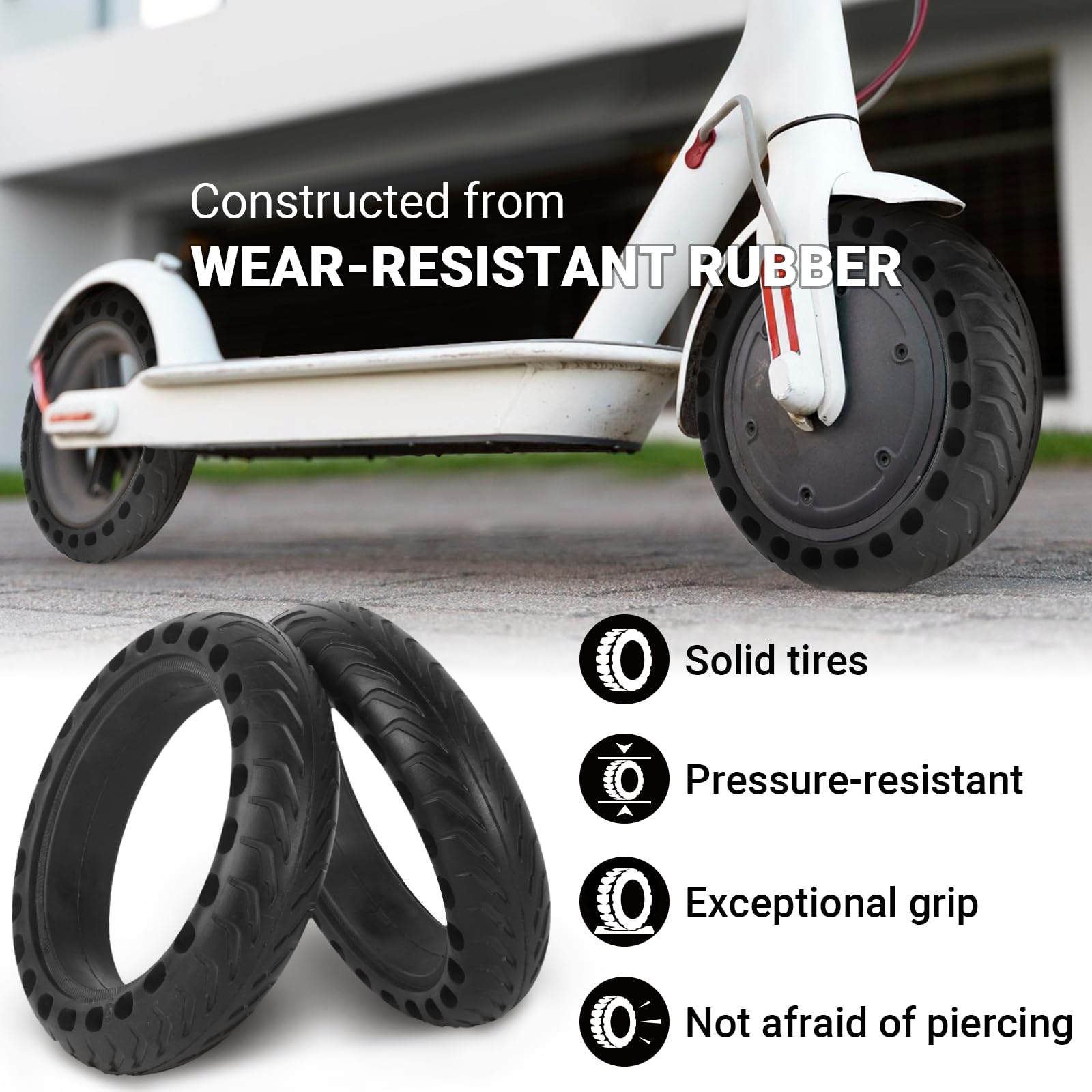 Long-Lasting 8.5 Inch Solid Scooter Tires for Xiaomi M365: Rely on our 8.5-inch solid scooter tires for unmatched durability. Constructed from high-quality, wear-resistant rubber, these power scooter tires feature a textured groove surface for exceptional grip, stability, and precise handling. Enjoy worry-free rides for thousands of miles without the need for constant maintenance.