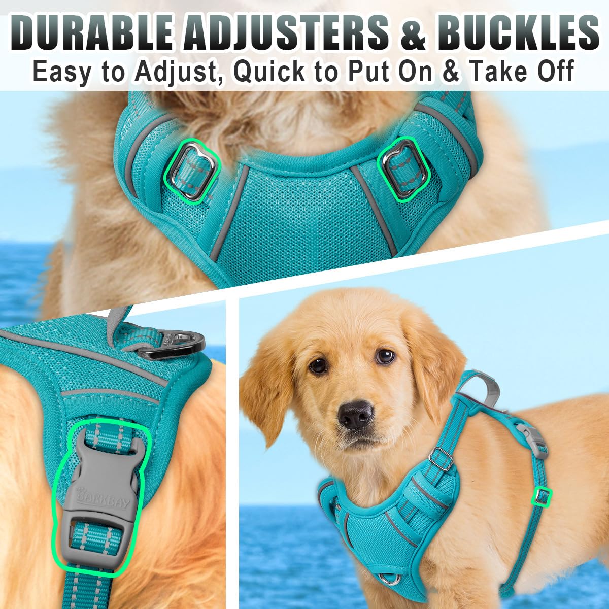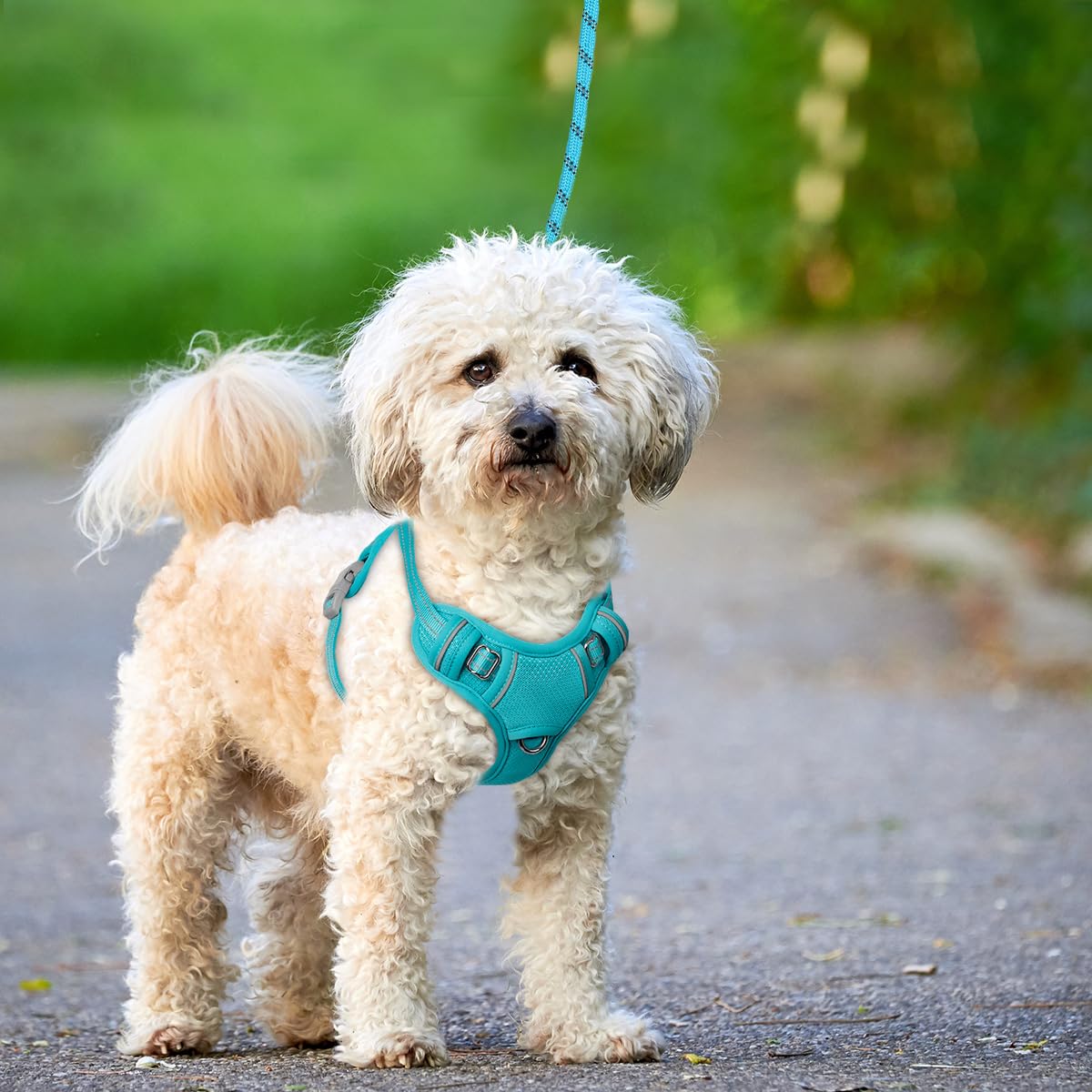 **Innovative No-Pull Design**: Features a strategically placed front halt ring to discourage pulling, making walks more enjoyable and training easier. A bonus back D-ring is perfect for casual strolls.
