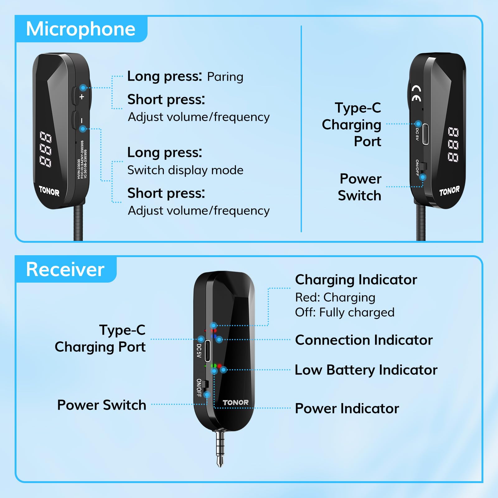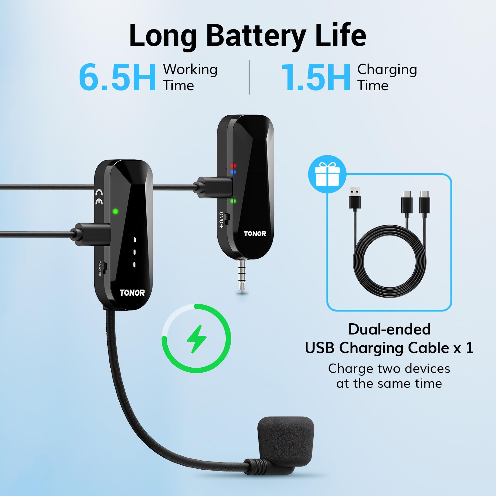 Rechargeable & Long Battery Life: Built-in 450 mAh rechargeable batteries, fully charged in 1.5 hours, and lasts 6.5 hours; includes a USB-A to dual-ended Type-C cable for simultaneous charging; low battery warning light and real-time battery display help you charge on time to avoid sudden power loss. Note: Do not use a Type-C to Type-C charger to avoid damaging the product
