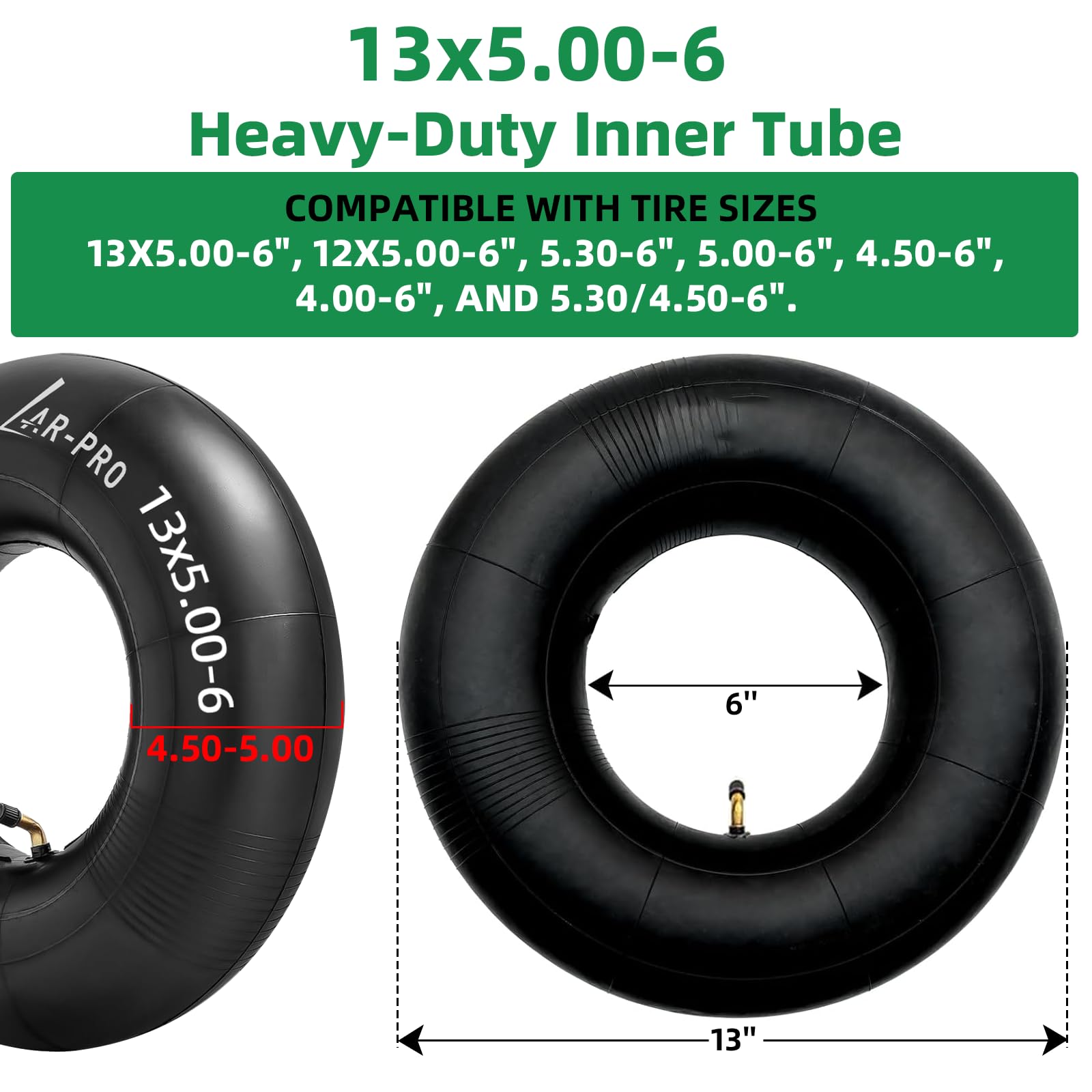 Widely Compatible with Multiple Vehicles and Sizes - These inner tubes also work with go-karts, riding lawn mowers, garden tractors, golf carts, wheelbarrows, hand trucks, wagons, trailers, snow throwers, and tillers. Compatible with tire sizes 13x5.00-6", 12x5.00-6", 5.30-6", 5.00-6", 4.50-6", 4.00-6", and 5.30/4.50-6".