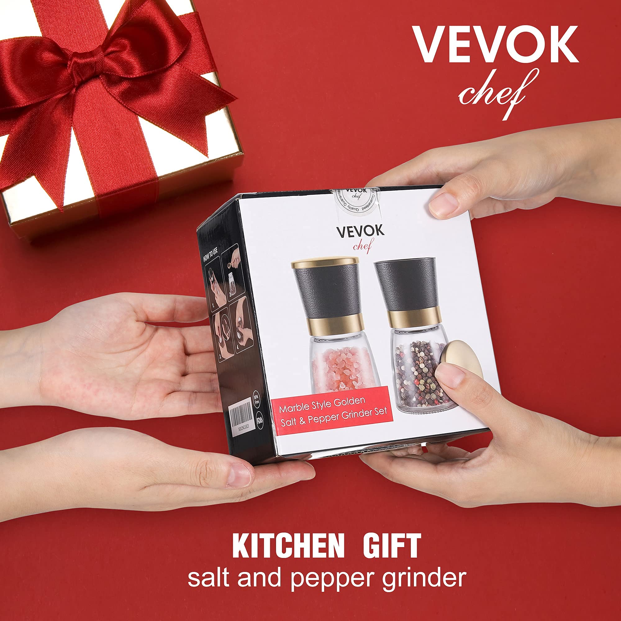 [Stepless adjustable ceramic grinder] - Our goldensalt and pepper mill set can adjust to every coarse you want. The ceramic grinding merchanism can grinder the spice from fine to coarse. And it won't abosorb the flavor of the spice.The VEVOK CHEF kitchen grinder is suitable for various spices,such as Black peppercorn ,himalayan salt,salt crystal etc