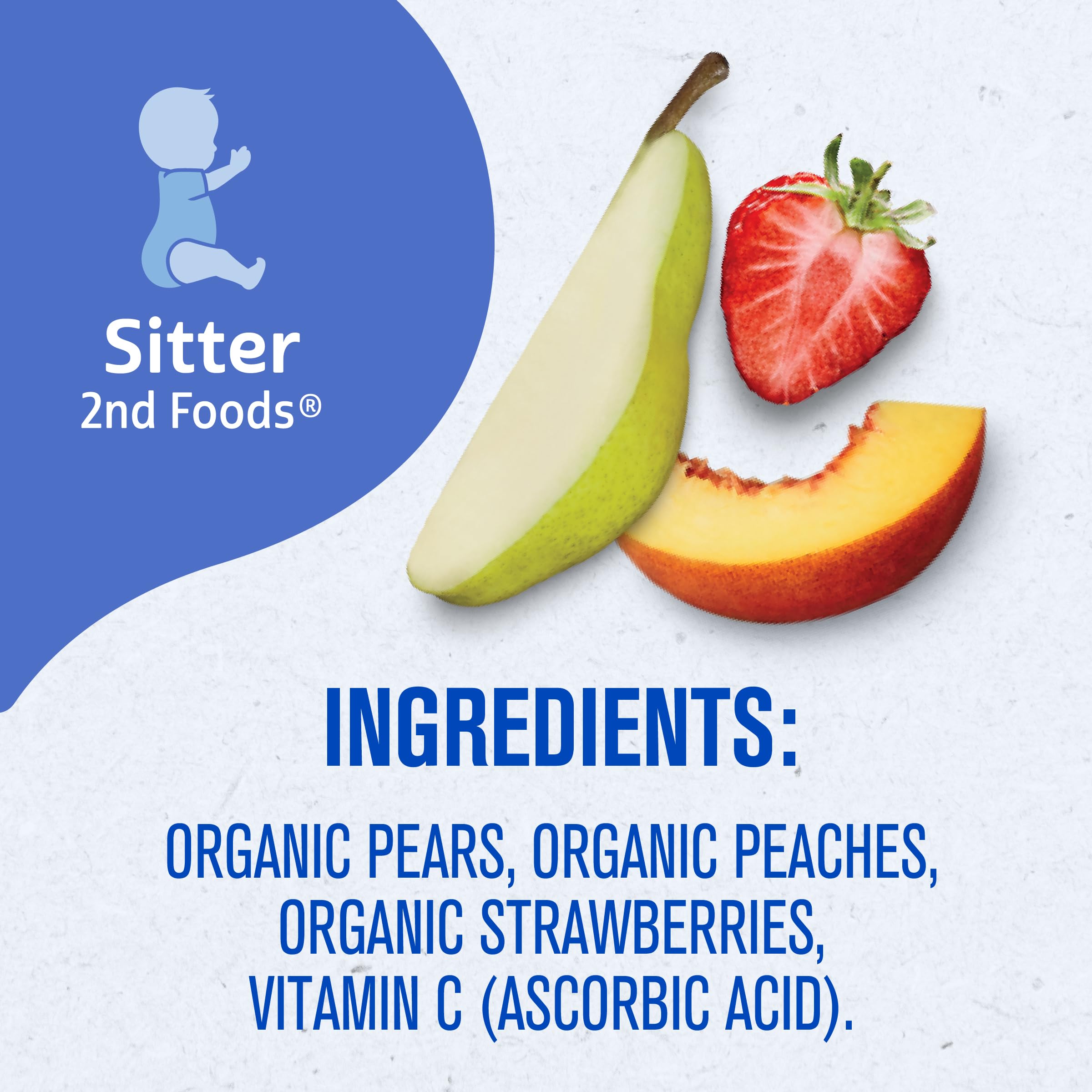 PUREED FRUIT: With your child in mind, our Gerber baby food offers a delightful organic blend of 1/3 pear, 1/8 peach, and 3/4 strawberry in each pouch