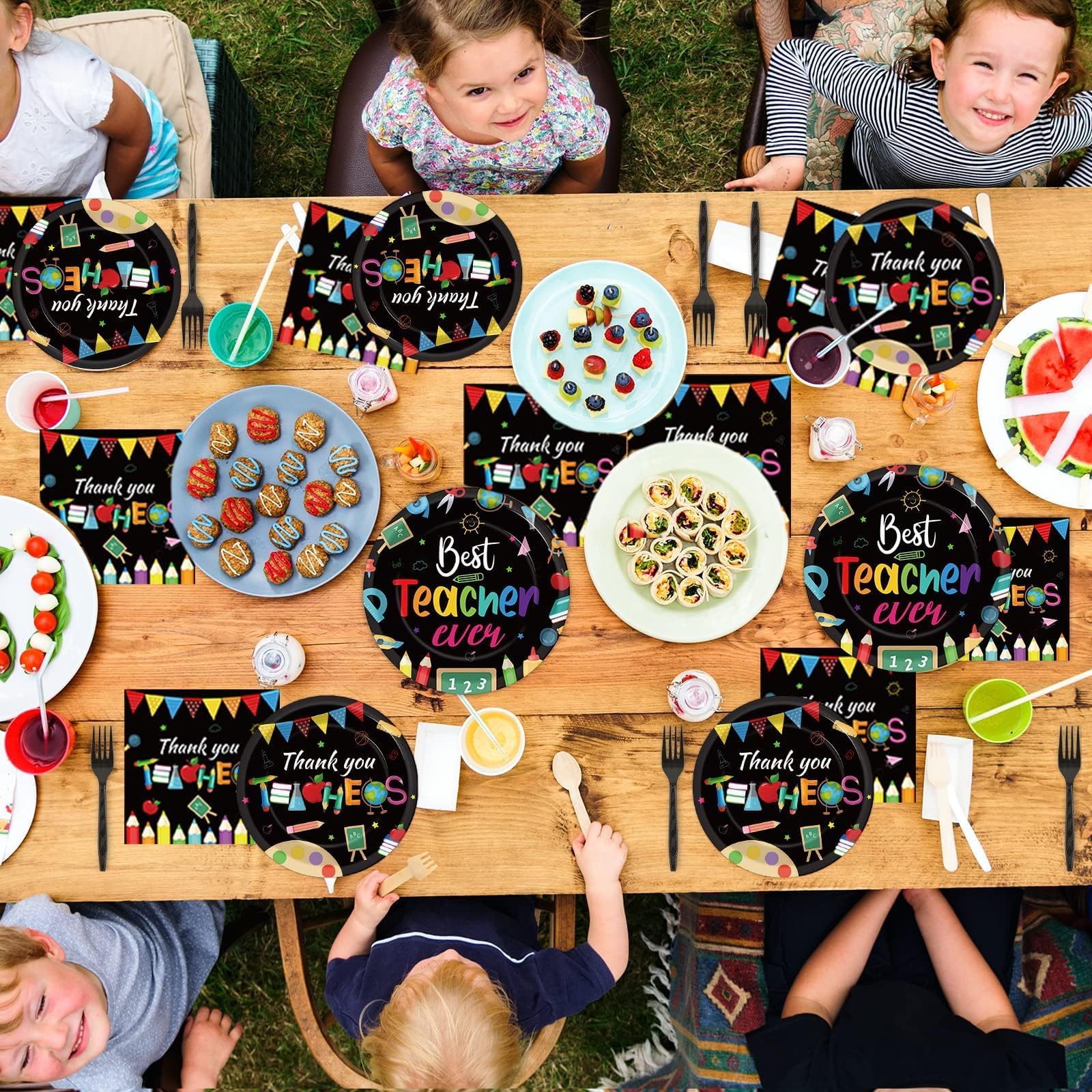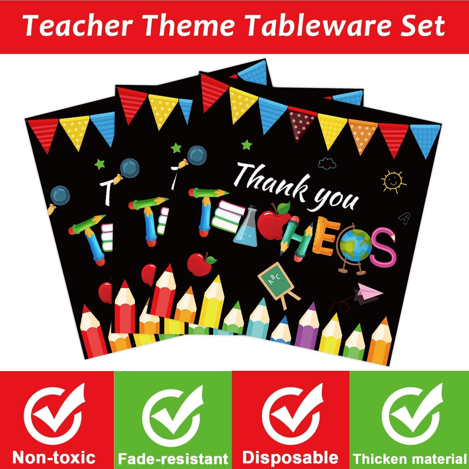 Premium material: All of our teacher themed tableware set like plates and napkins are made of quality paper, the thickened could withstand normal food weight. The teacher themed design are well-printed, avoid fading embarrassment.