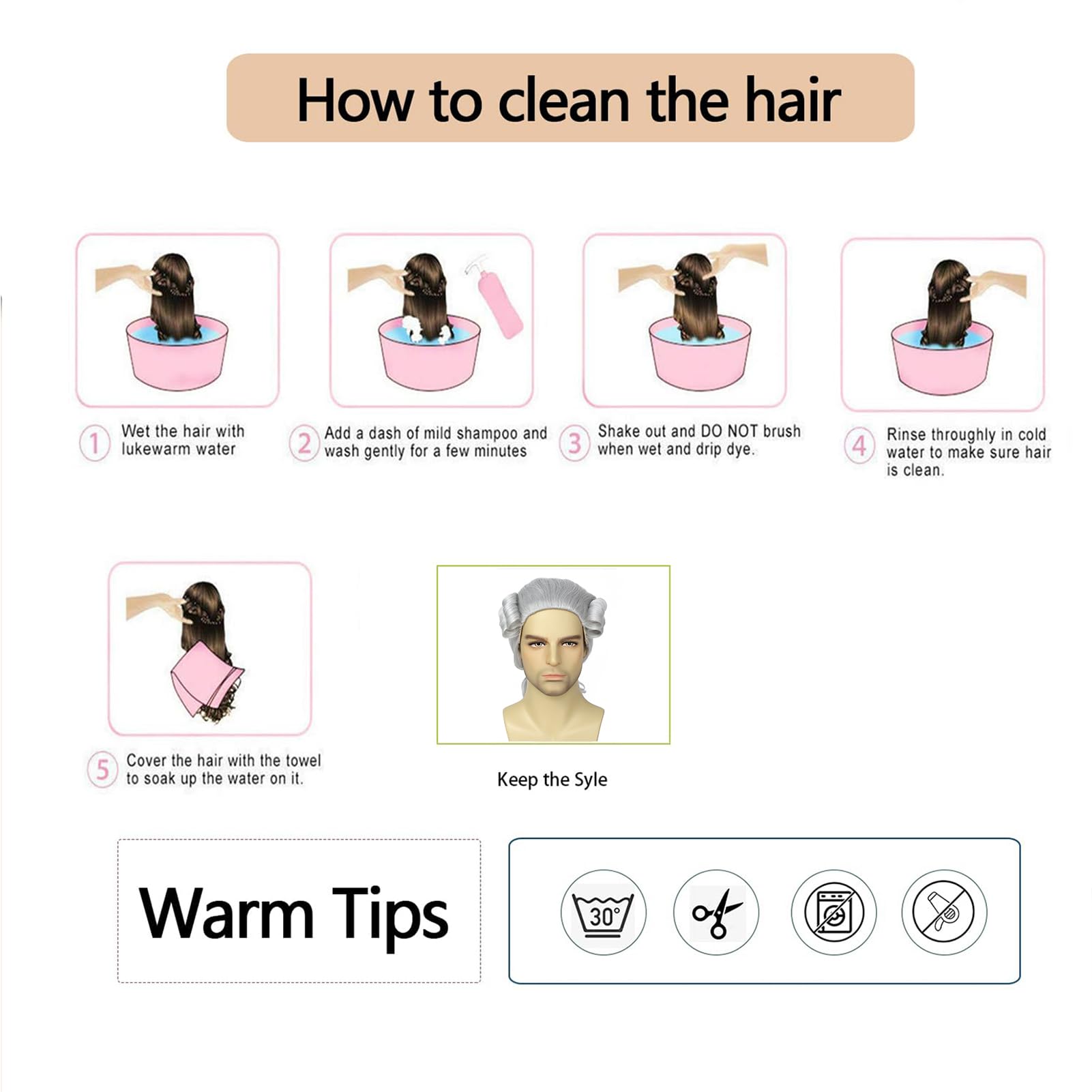 Ready to wesr:Funny wigs Pre styled upon arrival simply open and shake the wig out for a full free flow look.
