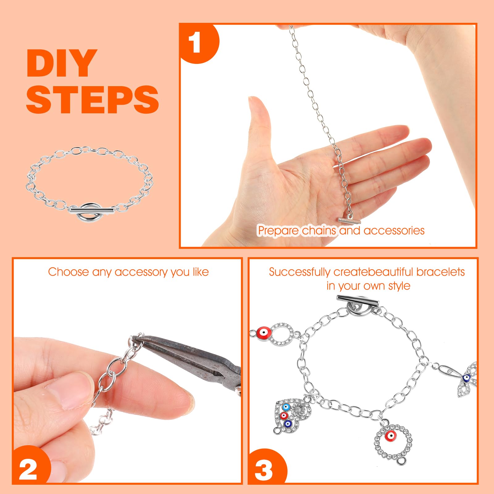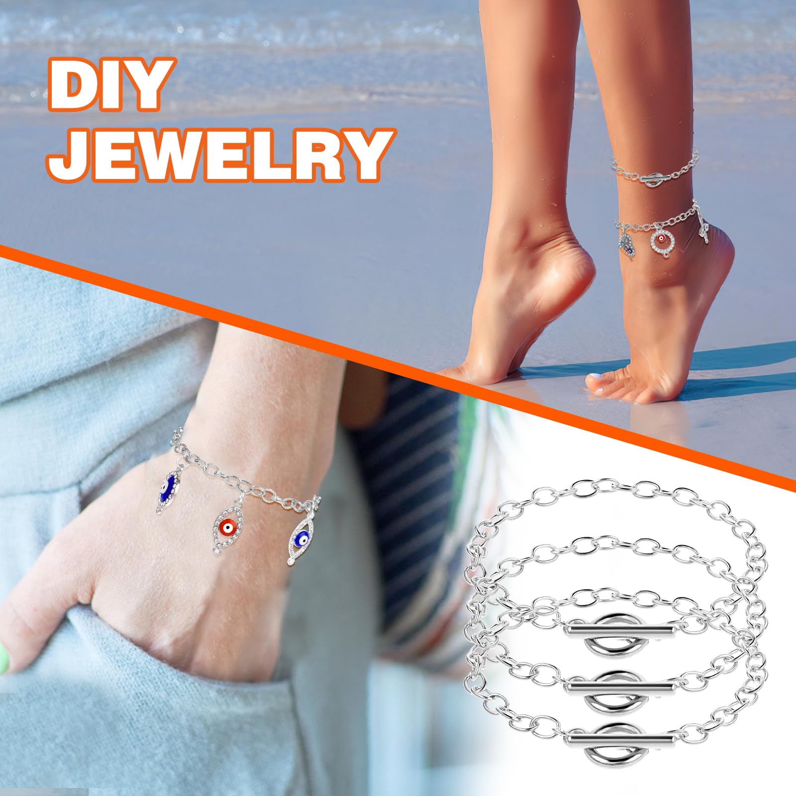 【Suitable Size】Each silver chain bracelet is 19cm/7.48inch long, lightweight and easy to carry, easy to put on and take off, ample length easily fits all wrists, perfect for the DIY enthusiast.