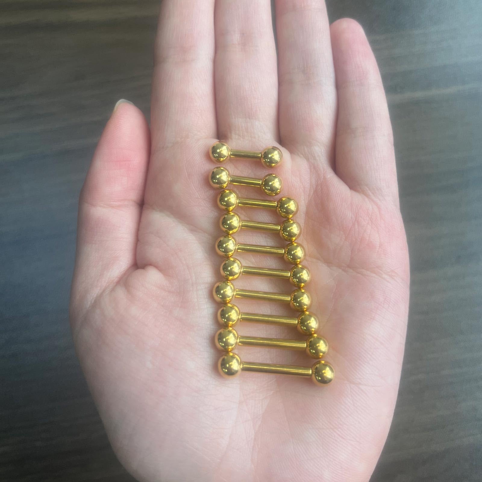 【ADVANTAGE】: The gold color PVD coated surface adds a touch of luxury and elegance to your body. Medical implant material.High polished surface. Both ball ends are removable.The threading is secure.Does not come out when tightened properly.Also tightly closed to prevent it from coming off, ensuring long-term use.