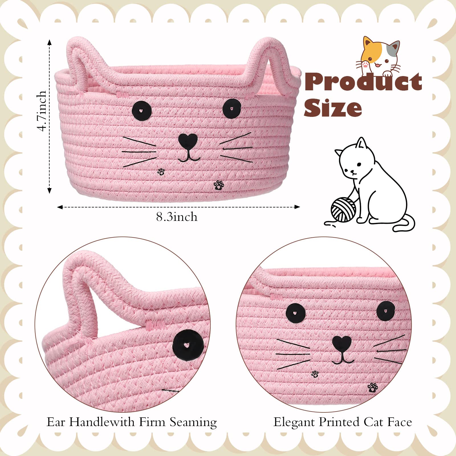 Great Gift: our cat basket can be used to place Easter eggs, Christmas gifts, or as a candy basket for Halloween; In addition, you can also share this cat laundry and toy gift basket with friends, family, children, cat lovers, neighbors at housewarming parties, family gatherings, birthdays, holiday parties, weddings, Valentine's Day parties or other suitable occasions