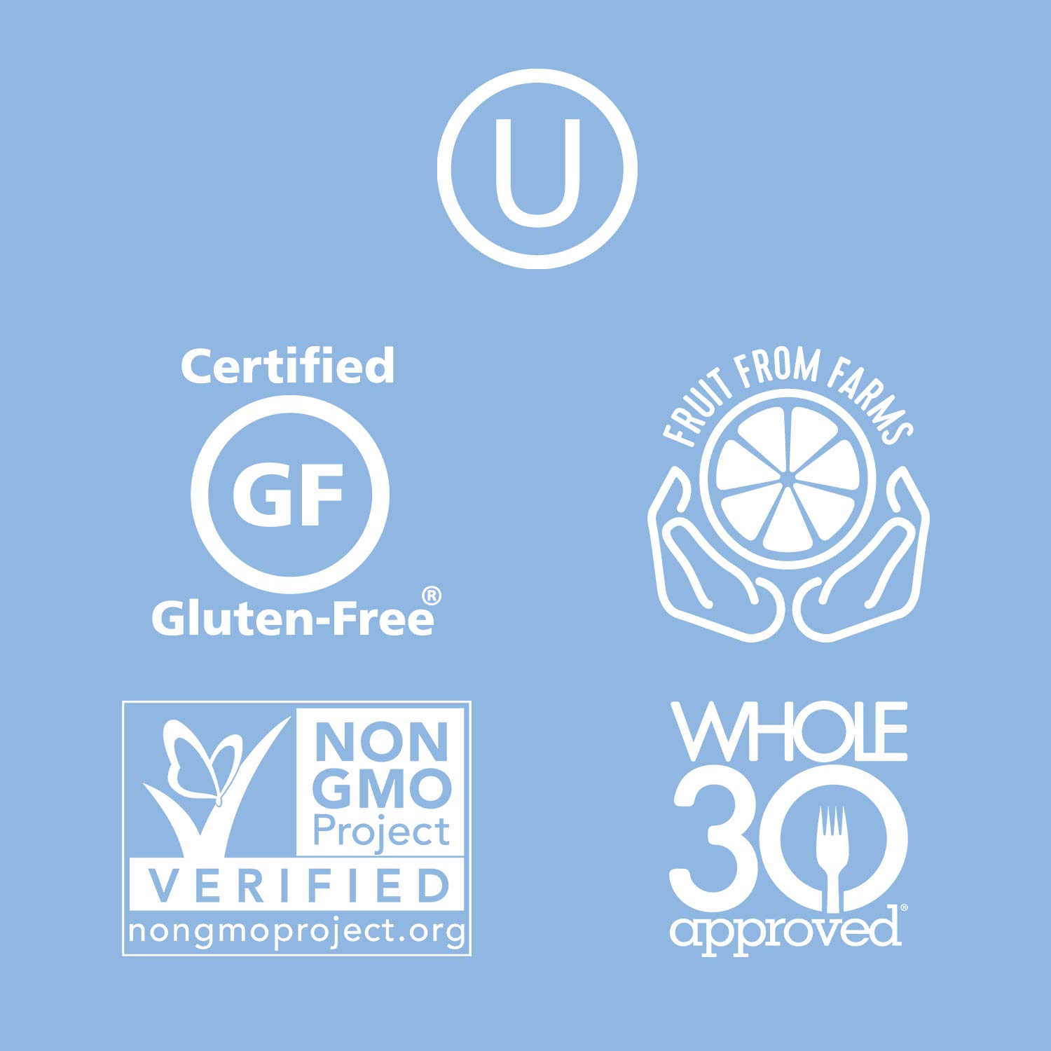 Unsweetened, no added sugar, gluten-free, non-GMO, kosher, never from concentrate