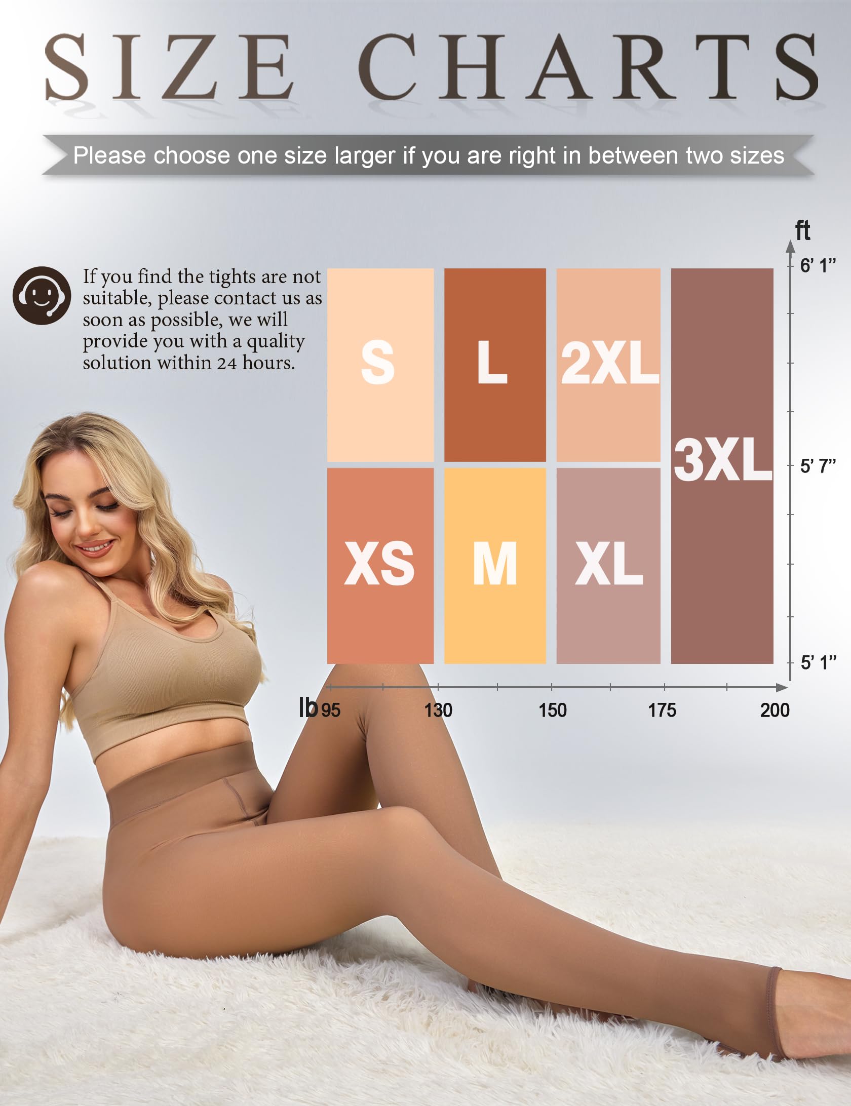 【SIZE UPGRADE】: Thermal pantyhose come in 7 sizes XS-3XL, for women of all shapes and sizes, you can follow the size chart to choose size that suits you best. Sheer fleece lined tights can be well match with skirts, wool coats, denim skirts, sweaters, boots and high heels. Perfect Gift for your wife, mother, friends and anyone you love
