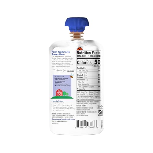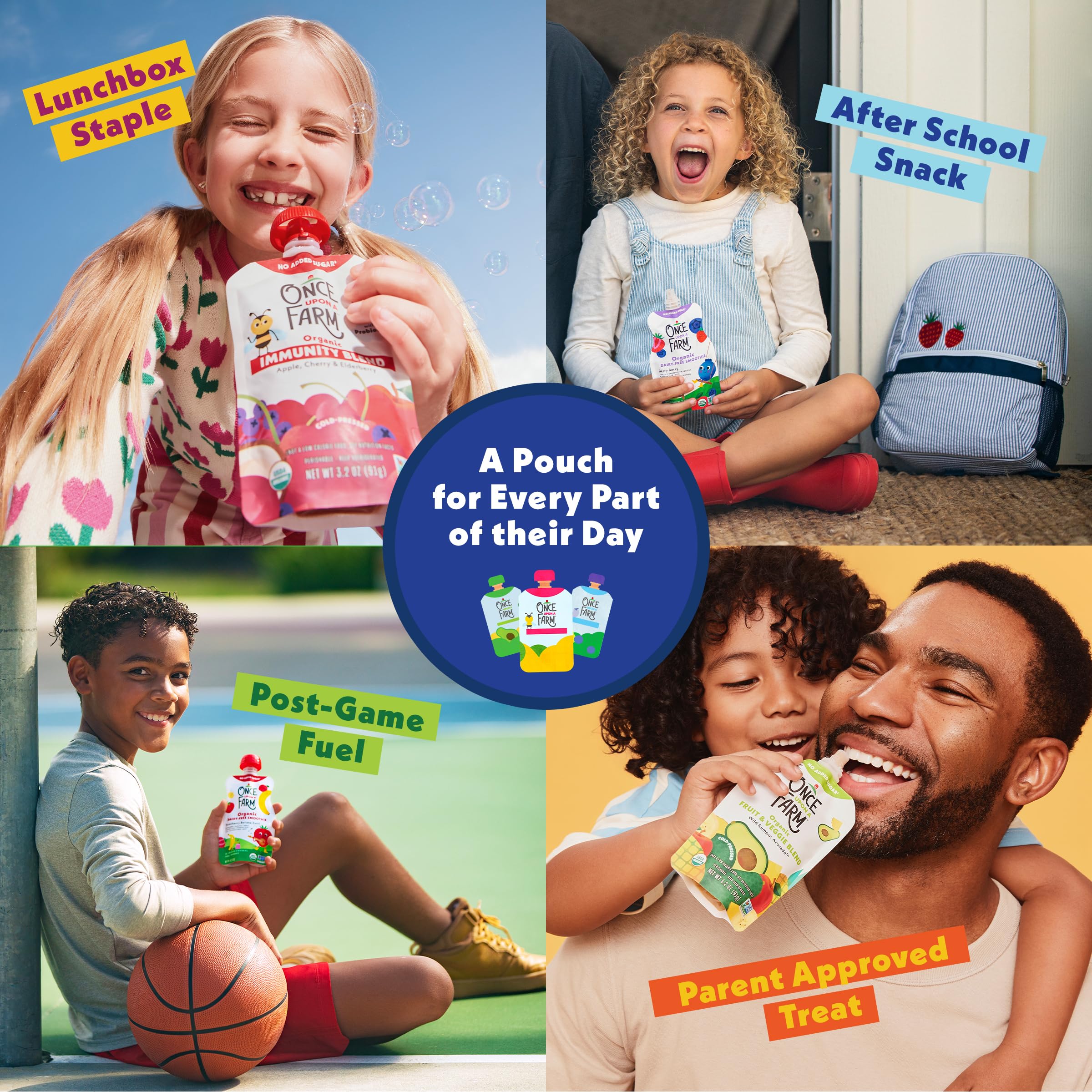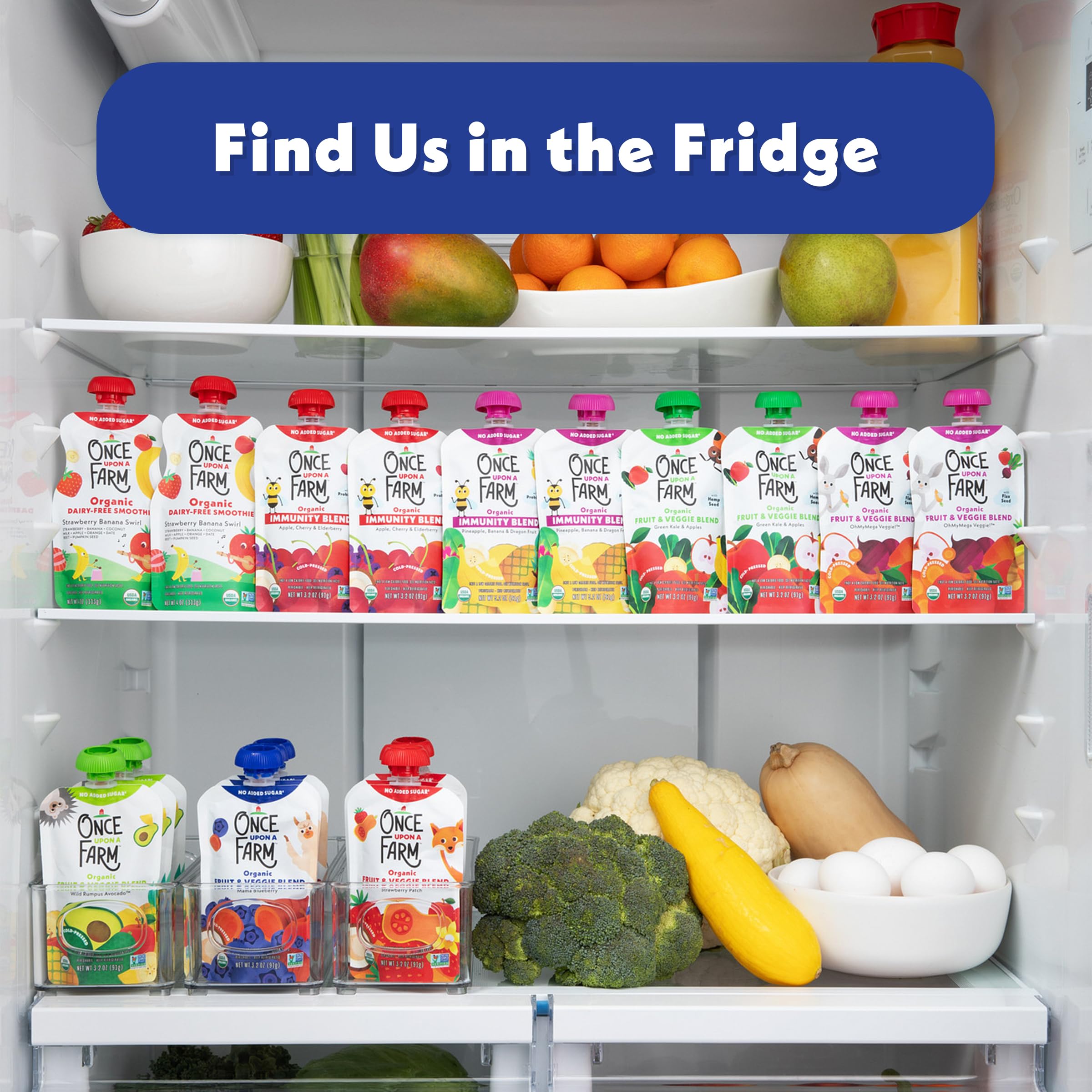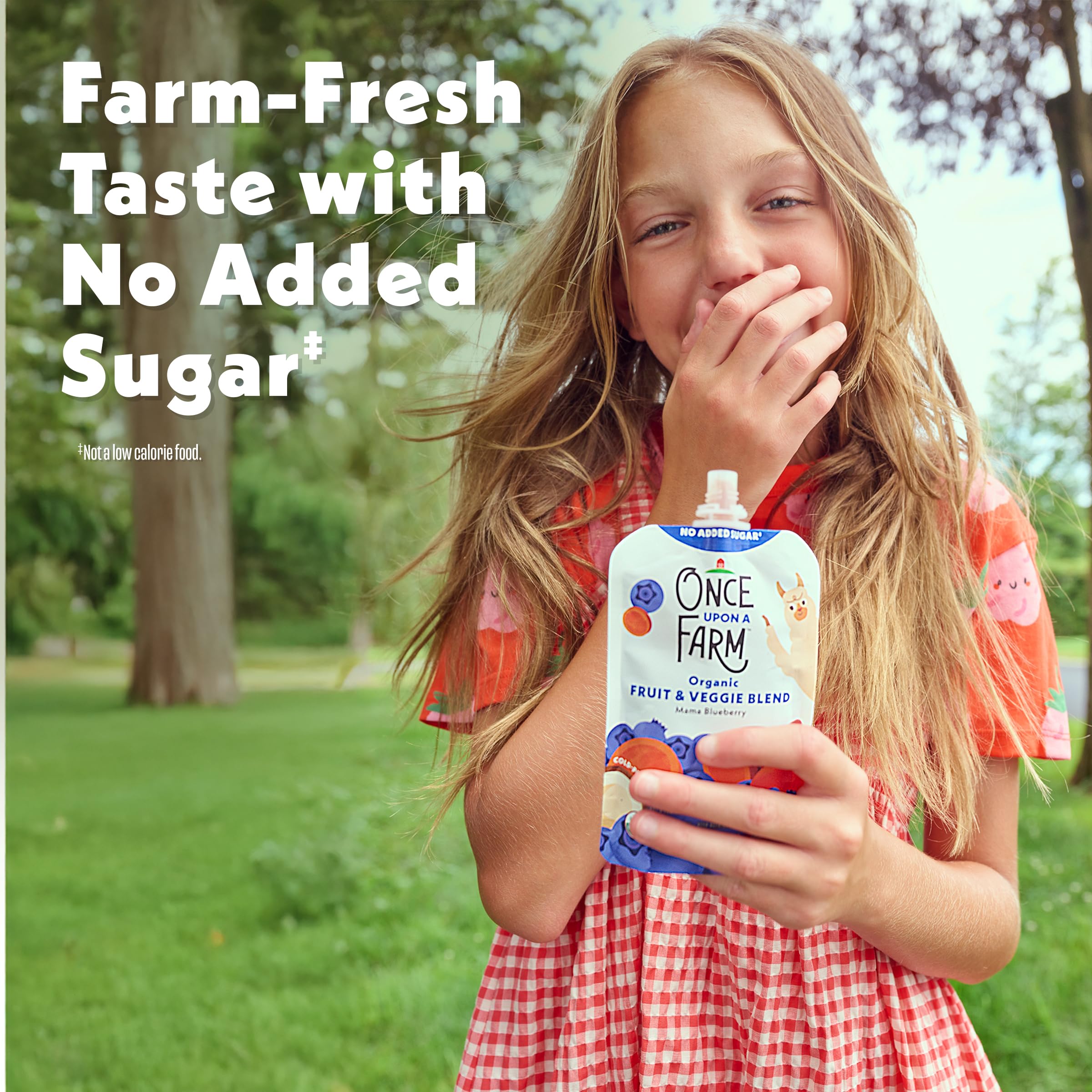 At Once Upon a Farm, a better story starts here. Our organic recipes are crafted with only the best ingredients -- whole fruits and veggies that are picked, blended and cold-pressed to lock in nutrients, taste and texture. Each of our non-GMO, non-dairy blends and smoothies have no added sugar, and are free from artificial flavors, colors and preservatives – just simple, real, nutrient-rich snacks your family will love.
