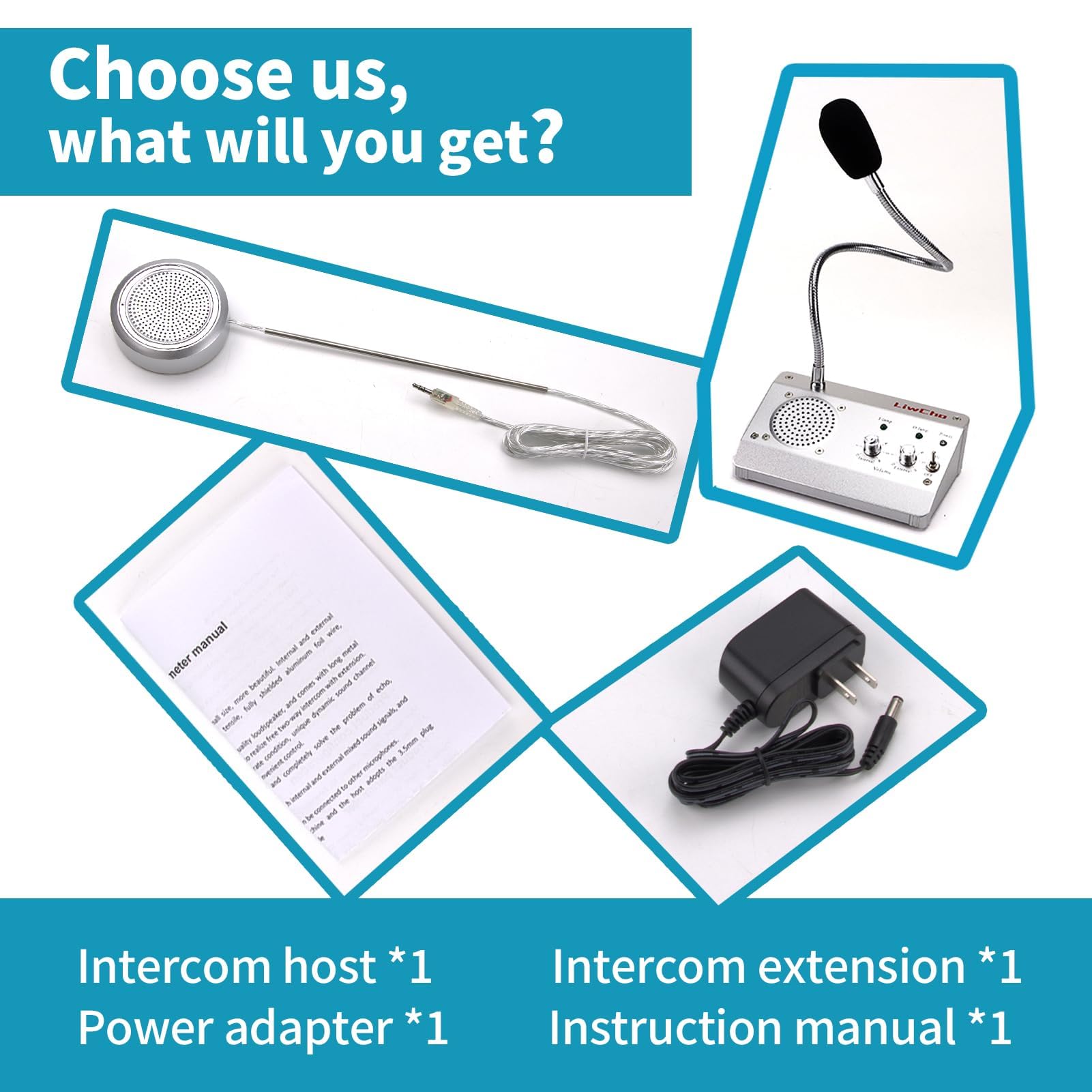 [Easy installation and use] LiwCho intercom system, with a complete English manual, detailed installation guidance and parameter description, just connect the host and extension with audio cable, power adapter end connected to the host, one end connected to the power supply, simple operation can easily achieve high-quality intercom. speaker for glass window.