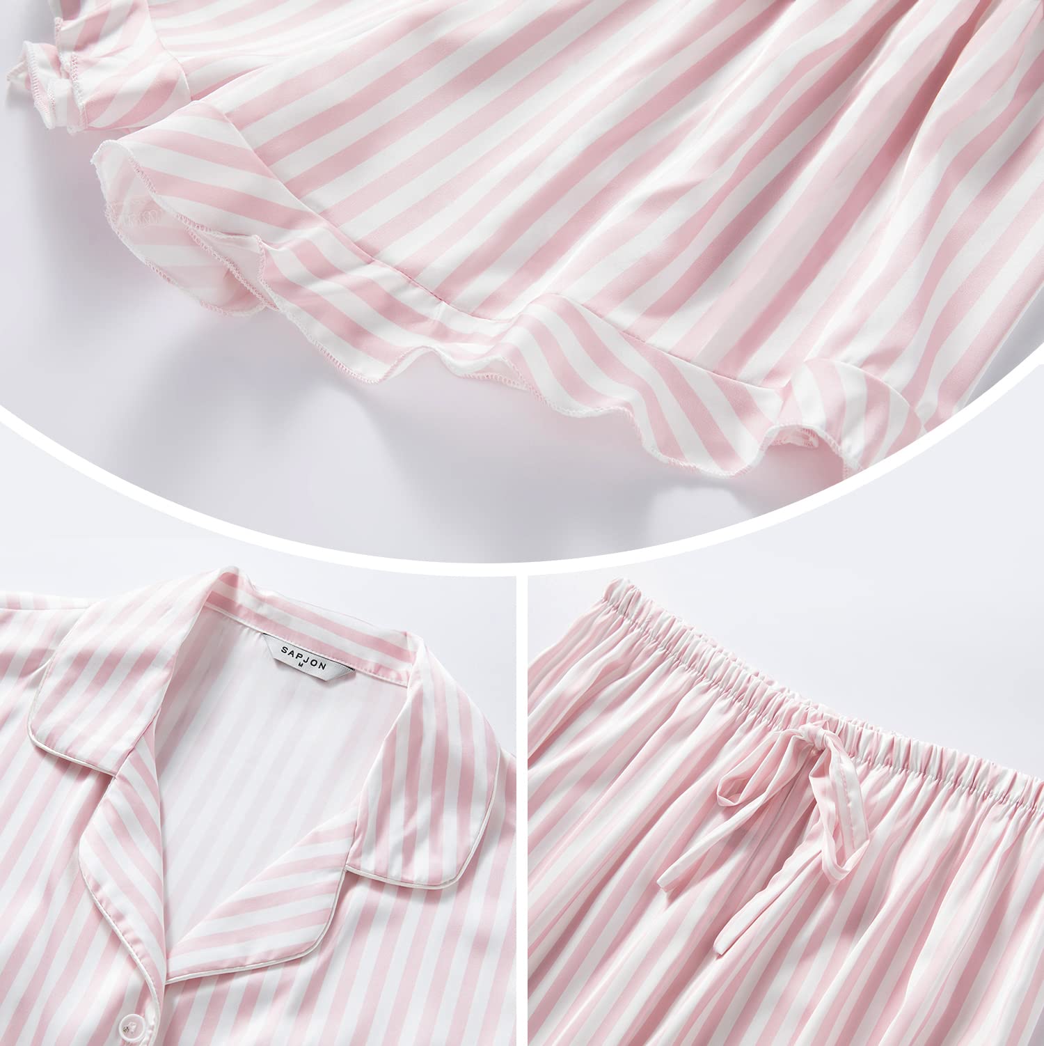 【High Quality Material】SAPJON's womens silk pajama sets is made of unique satin fabric, which is very soft, lightweight, and comfortable. The comfort is close to the touch of mulberry silk. Our satin pajamas women bring you more breathable and skin-friendly feeling.
