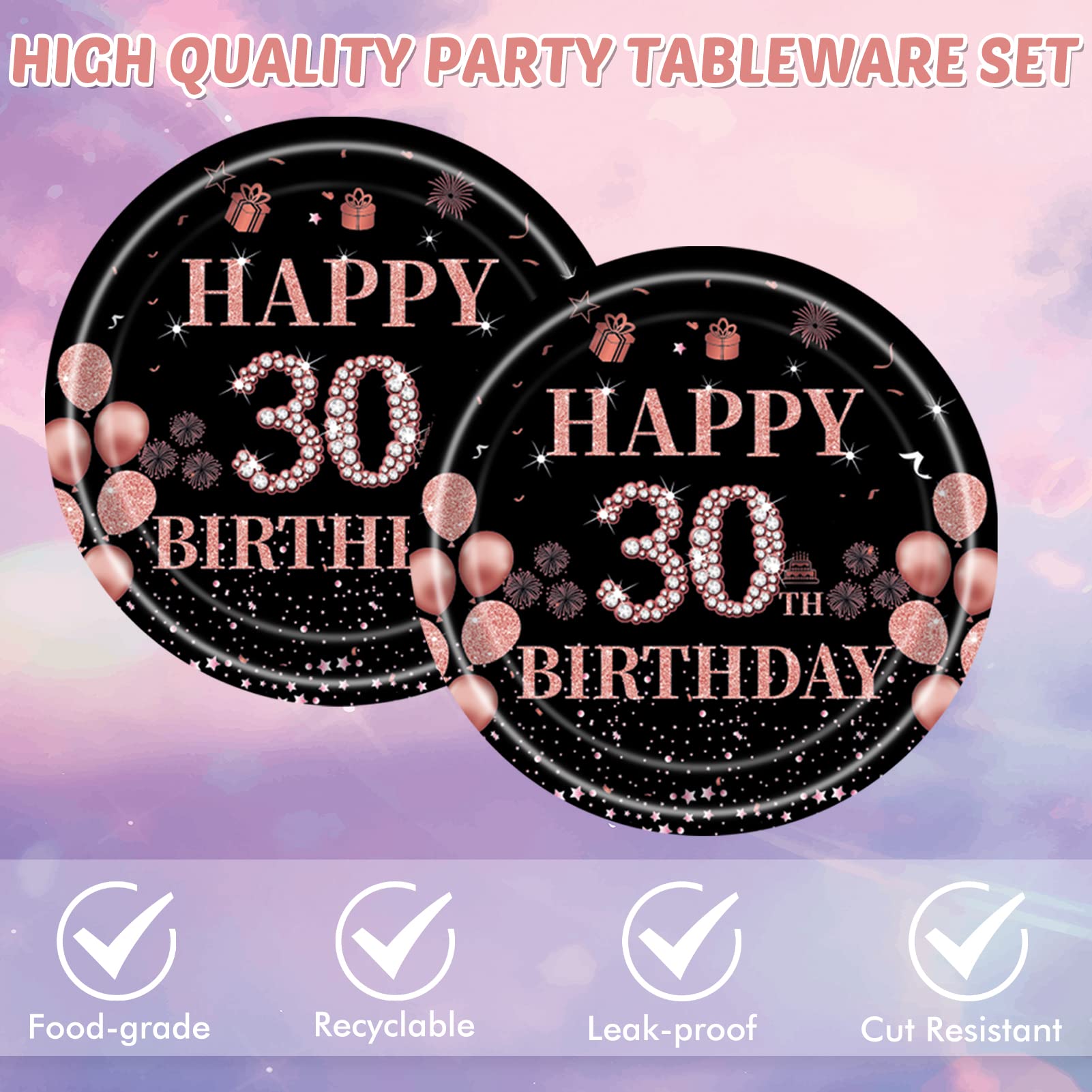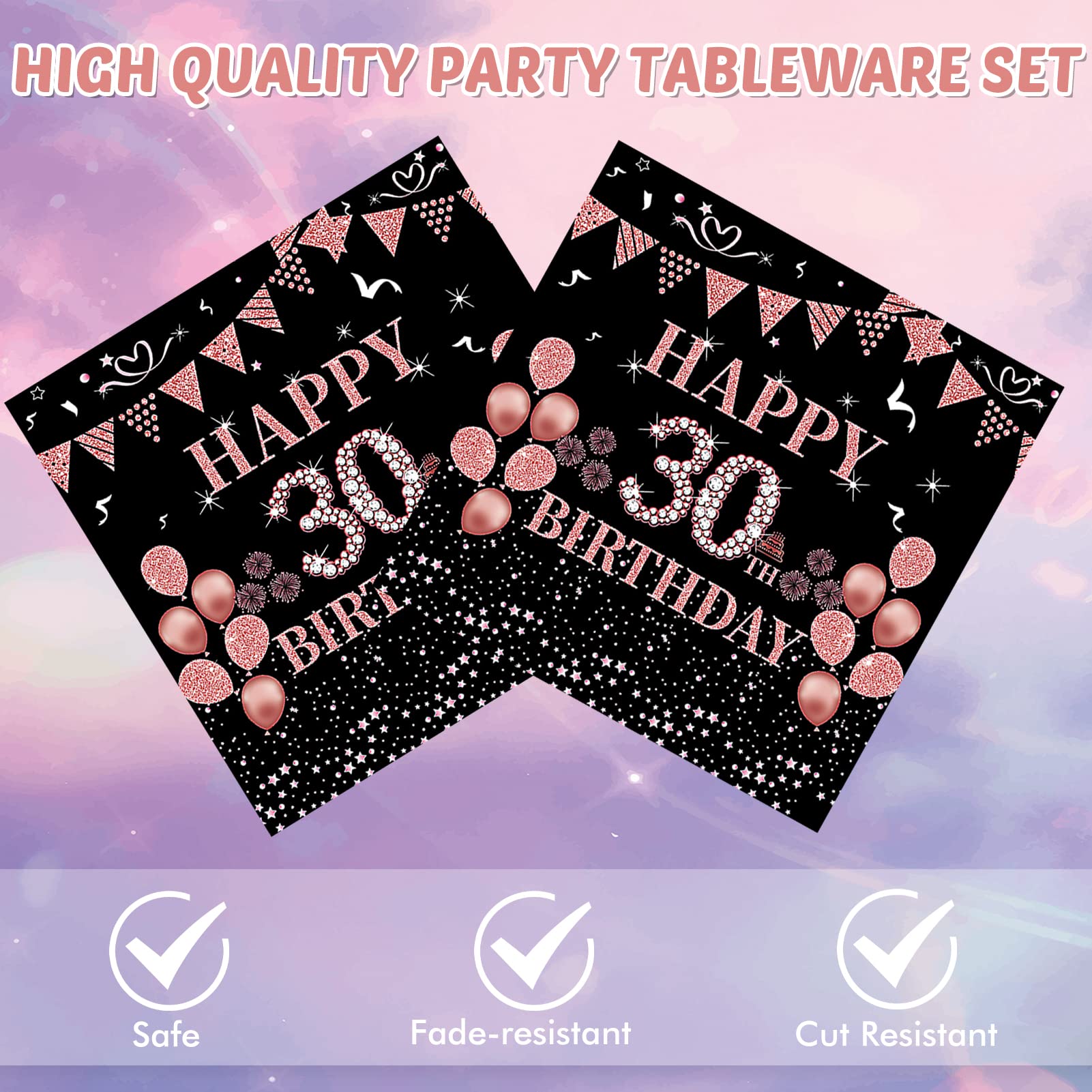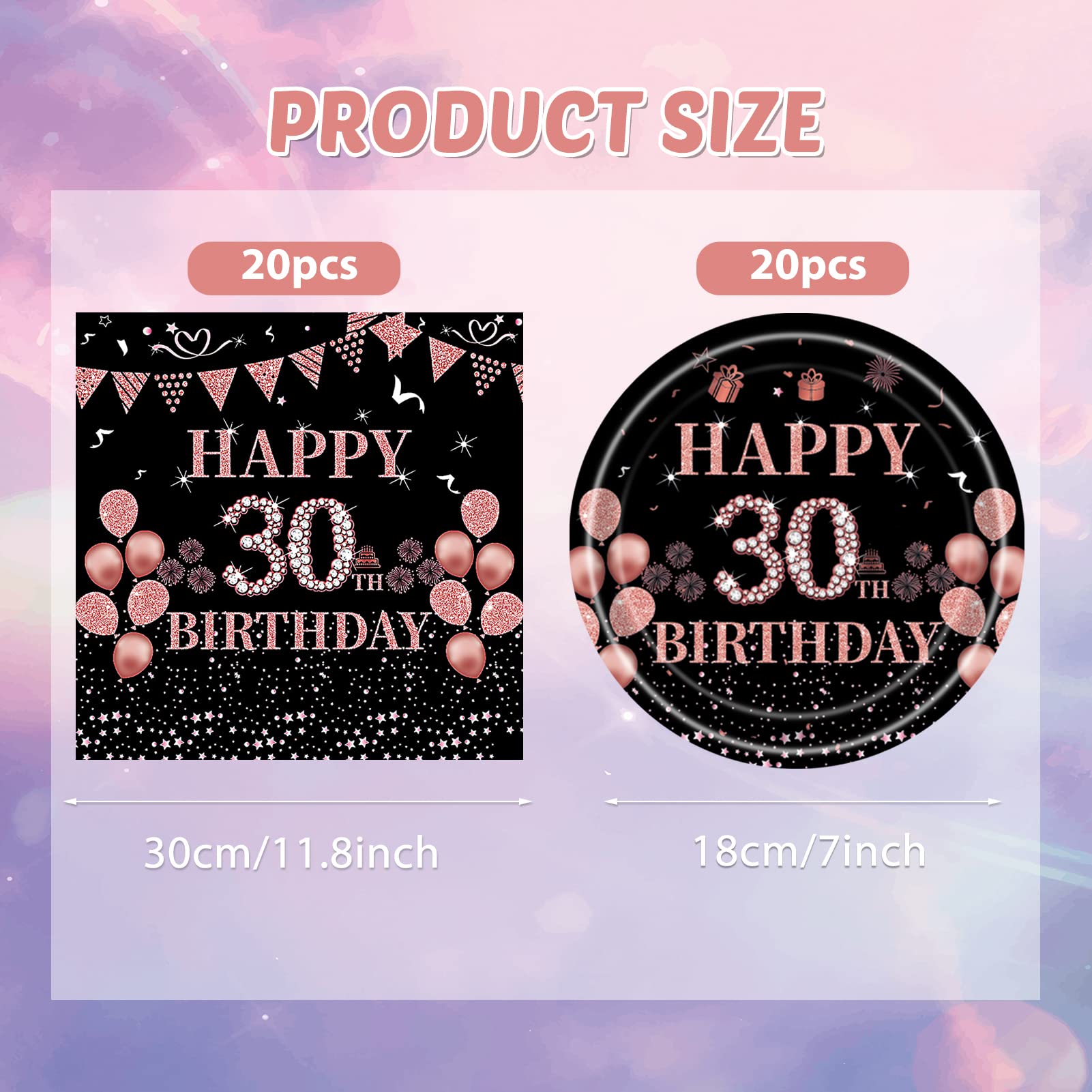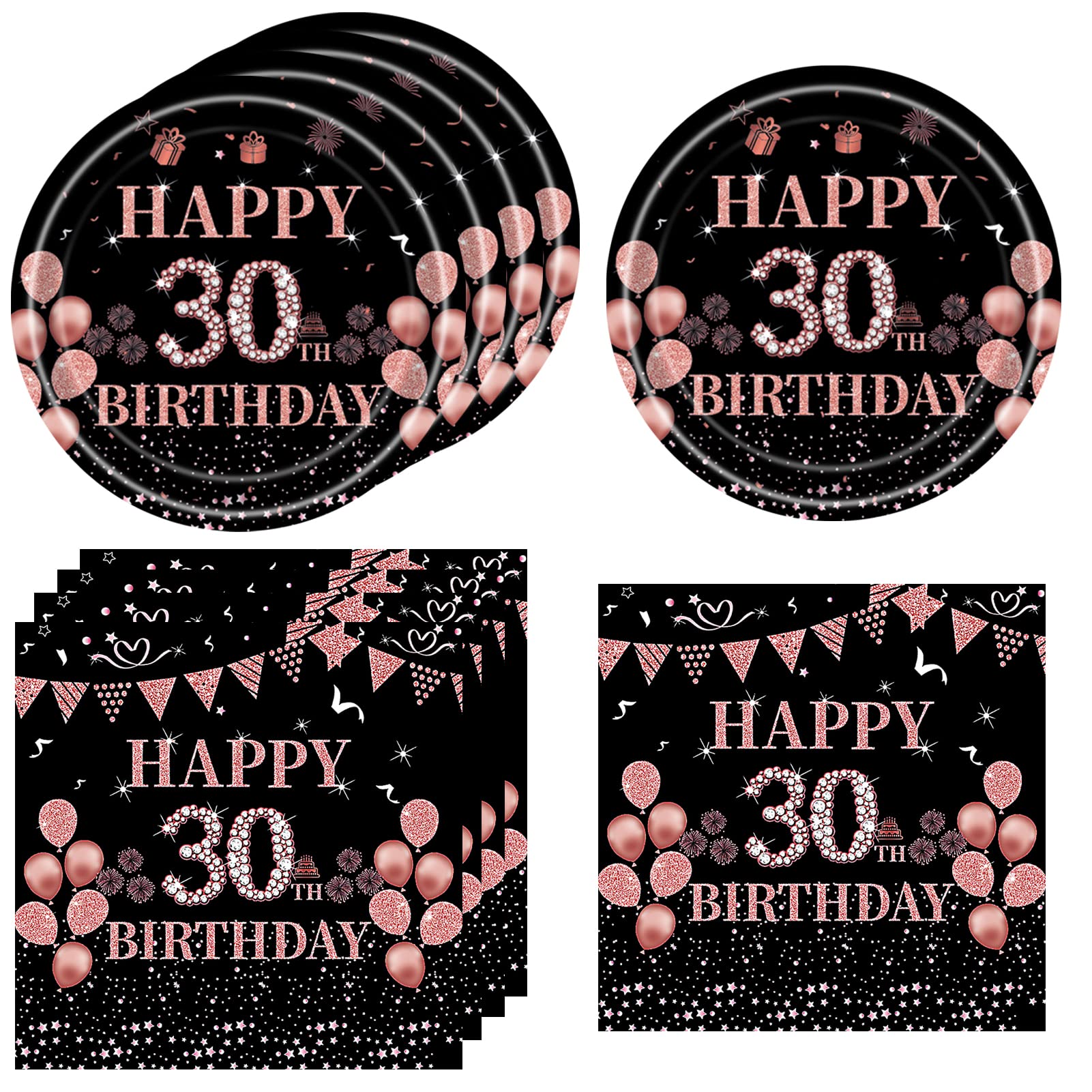 Serves 20 Guests: Our rose gold party decorations include ,20pieces 30th birthday plates, 20pieces 30th birthday napkins for each set that can serve 20 guests.Each girl will enjoy a happy 30th birthday.