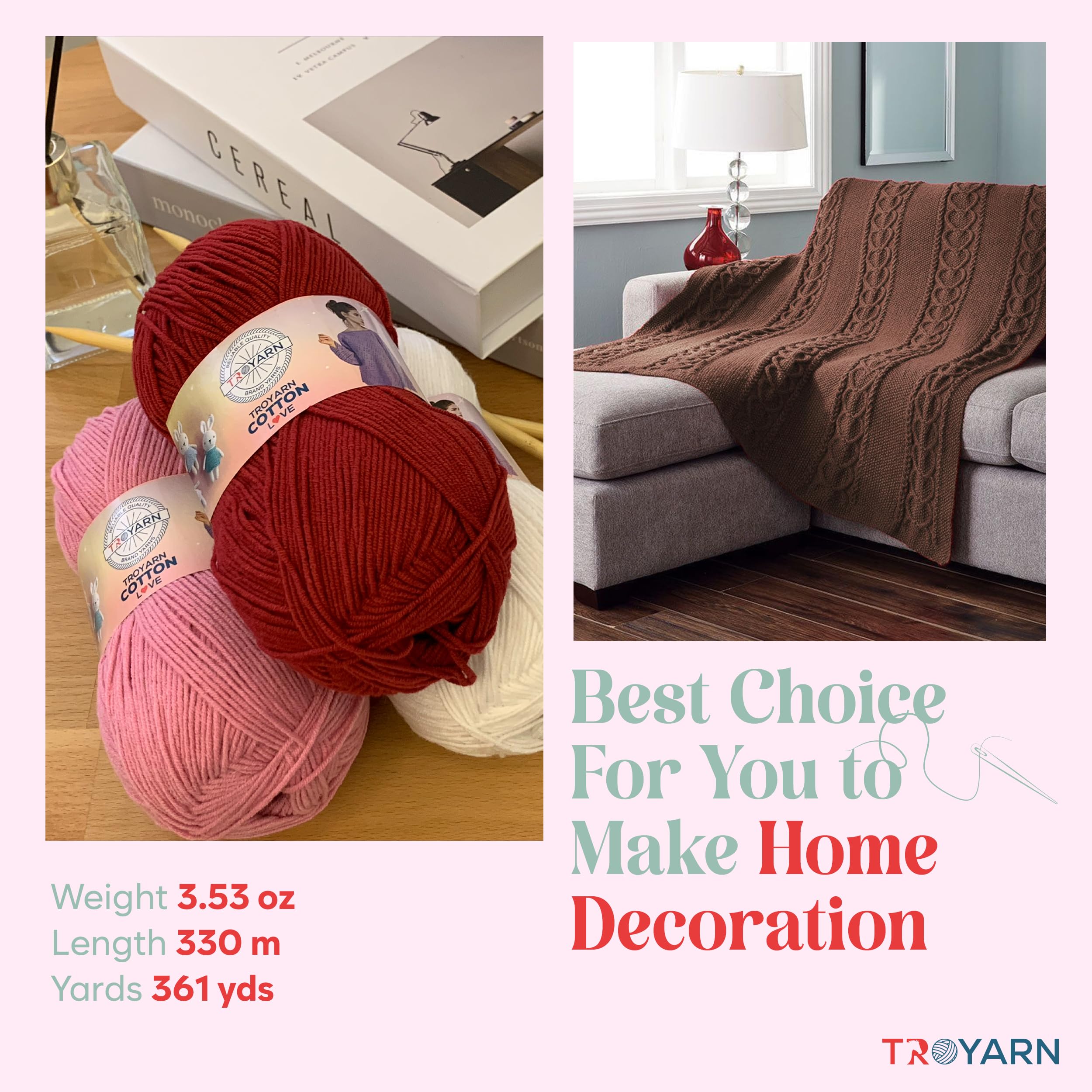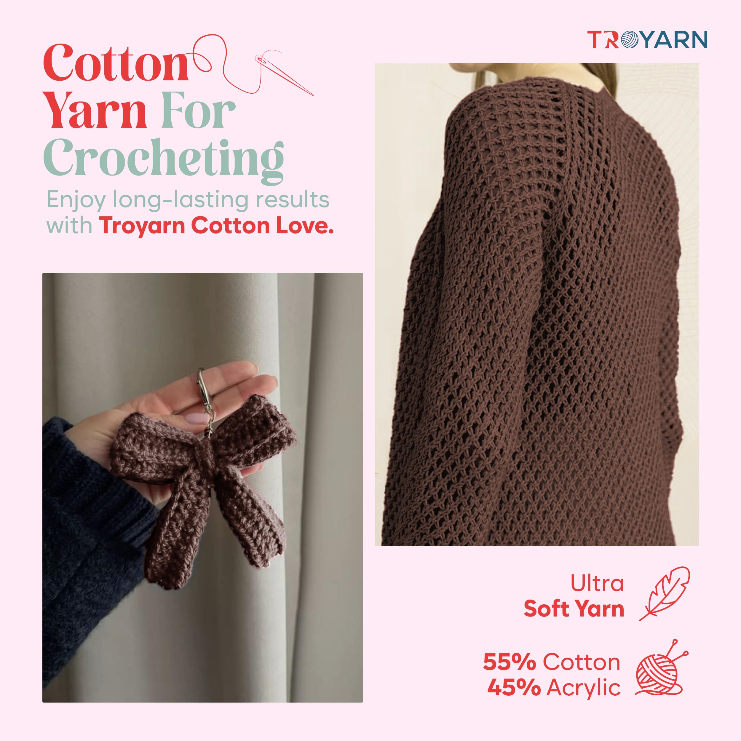 🧶 Troyarn Cotton Love yarn is made of 55% Cotton 45% Acrylic yarn