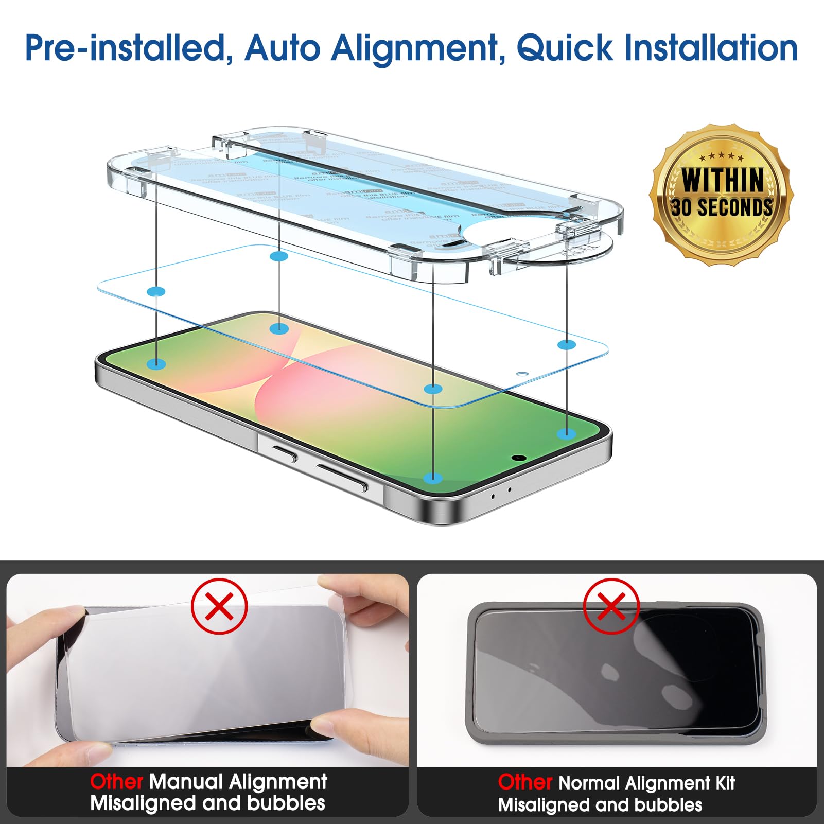 【Ultra-Fast Installation, Auto-Alignment in 30 seconds!】 Installing a screen protector might seem like a headache, but our OneTouch Samsung Galaxy A56 5G 6.7" screen protector is equipped with an automatic alignment kit for a fast installation in just 30 seconds! Say goodbye to the hassle of manual alignment.