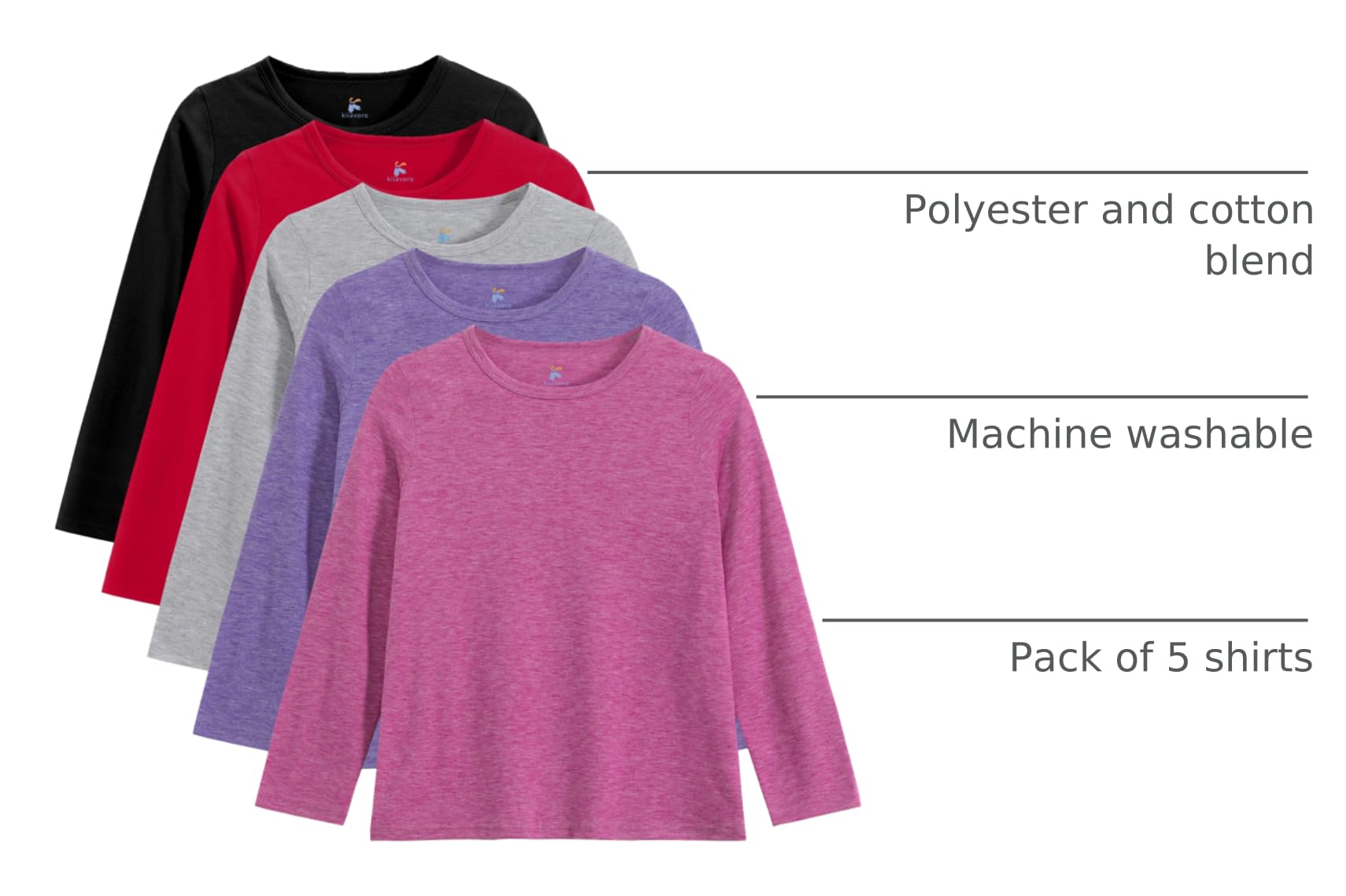 PACKAGING INCLUDES: Each pack includes 5 pieces of girls long sleeve shirts, offering various color combinations for you to choose from, catering to different preferences and occasions