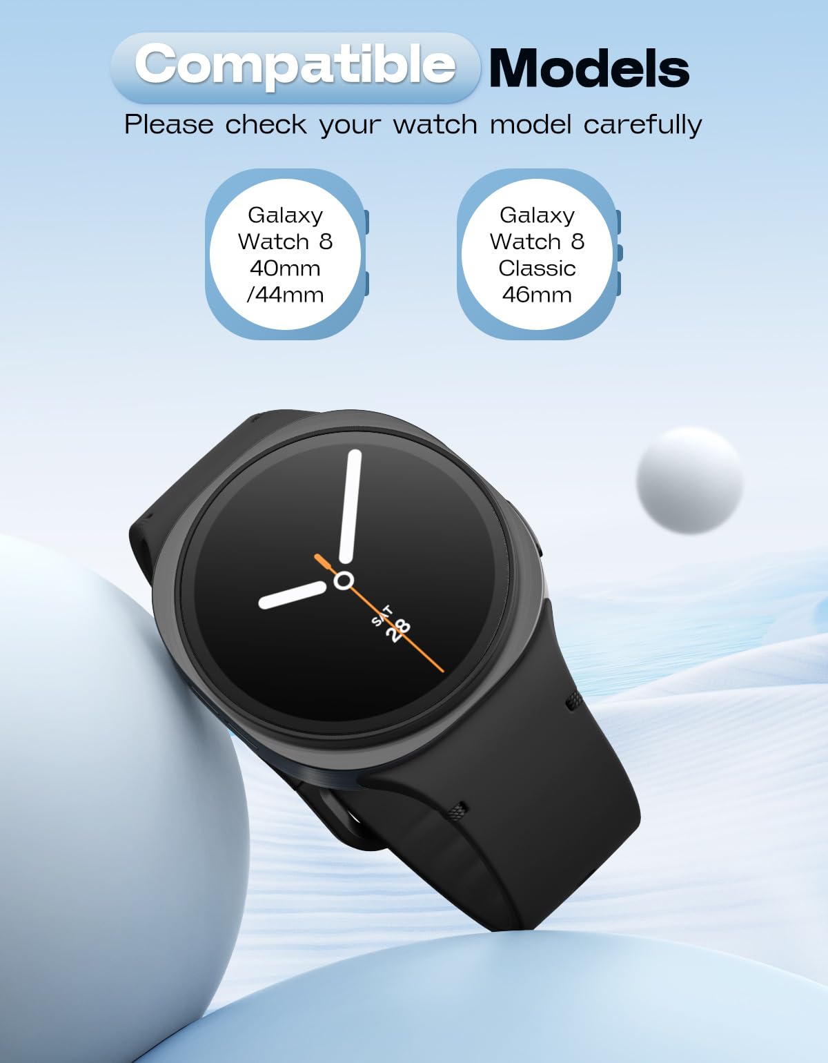 Compatible Models: This soft silicone band is only compatible with Samsung Galaxy Watch 8 band 40mm/44mm and Galaxy Watch 8 Classic band 46mm. Note: Smartwatches are not included.
