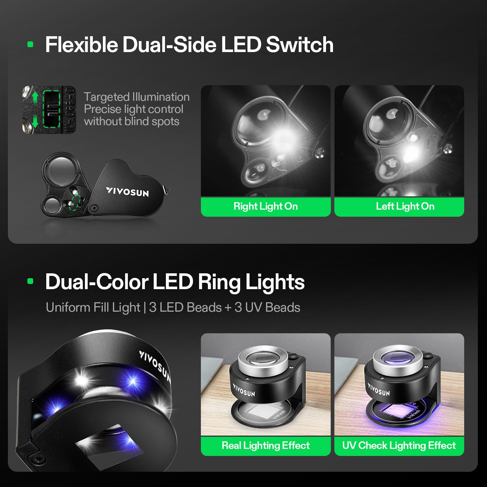 Premium Loupe Set: Boasting optical-grade lenses, this set ensures crisp visual clarity for inspecting intricate details; Equipped with built-in illumination, it enables enhanced observation in any lighting condition; A lens wiping cloth is included for easy maintenance