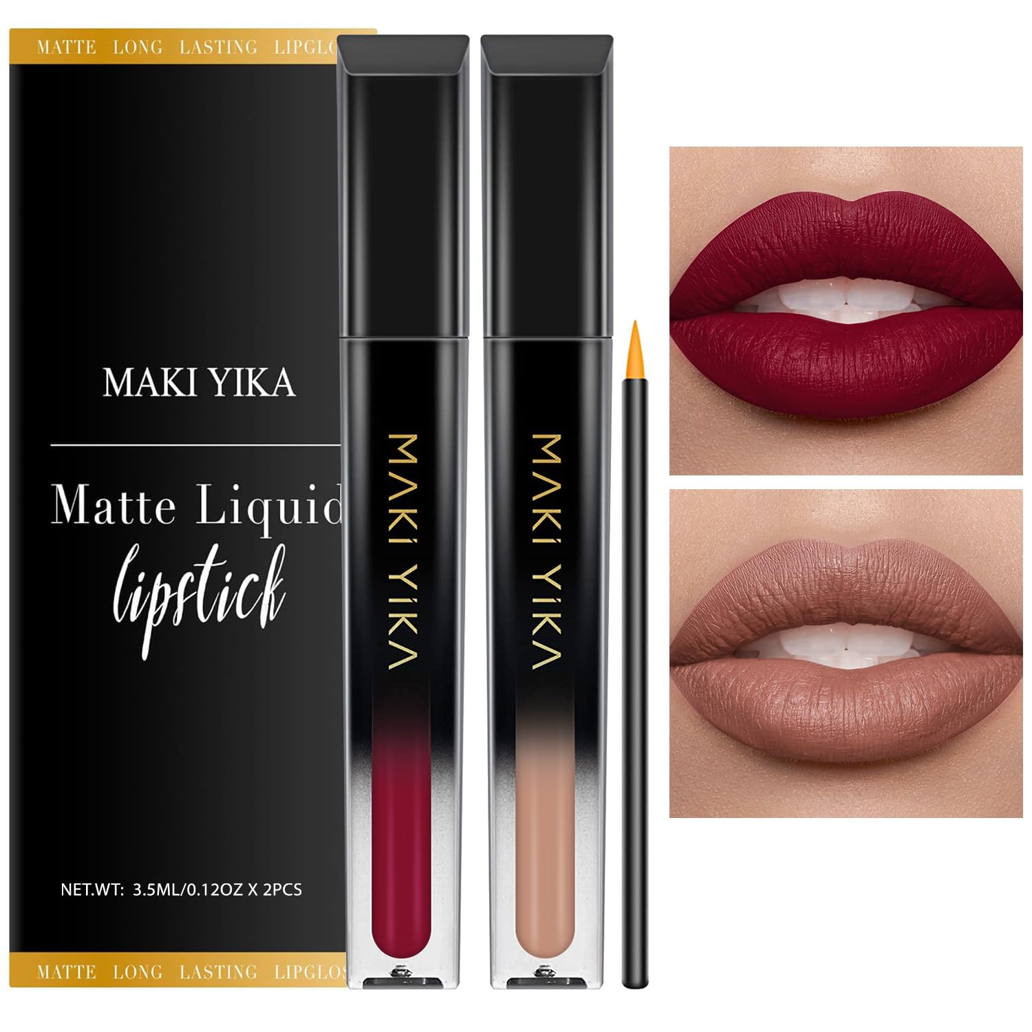 2Pcs Matte Liquid Lipstick Makeup Set Matte liquid Long-Lasting Wear Non-Stick Cup Not Fade Smudgeproof Lip Makeup