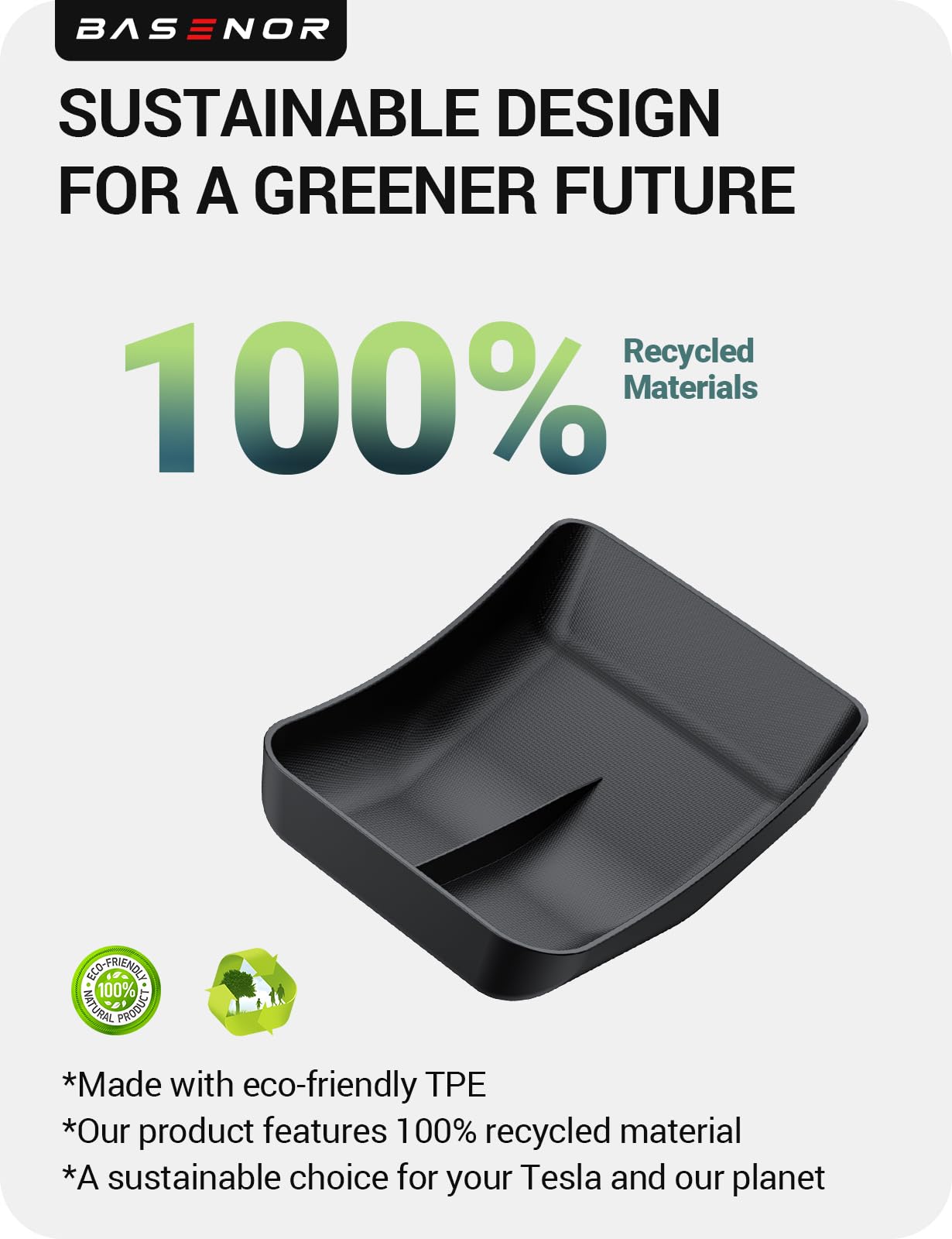 🌱 CERTIFIED SUSTAINABLE: Incredible Custom Design Loved by 500,000+ Tesla Owners. BASENOR presents an exceptional line of Model S Center Console Tray with a one-piece molding technique, designed to fit 2022-2026 Model S, Model S Plaid, and Model X, Model X Plaid vehicles.