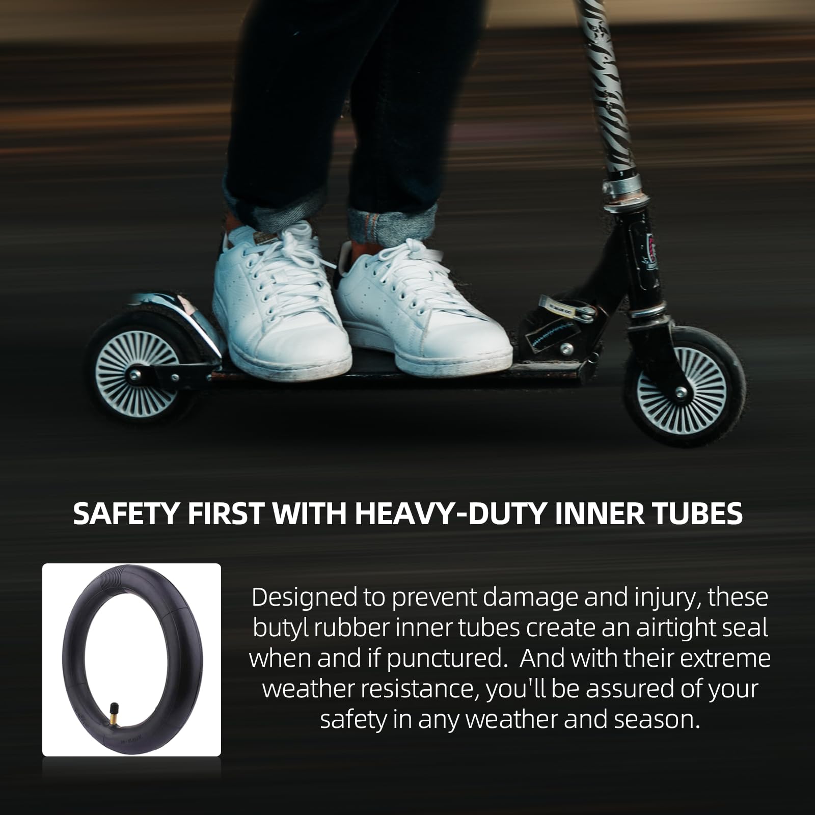 EXTRA THICK BUTYL RUBBER INNER TUBES - With thick, shock-absorbent butyl rubber, you feel the bumps and potholes as your scooter glides along. These replacement inner tubes are .5 mm thicker than average inner tubes providing a higher impact dampening effect. Aside from that, these tubes are also chemical, weather, tear, and wear-resistant.