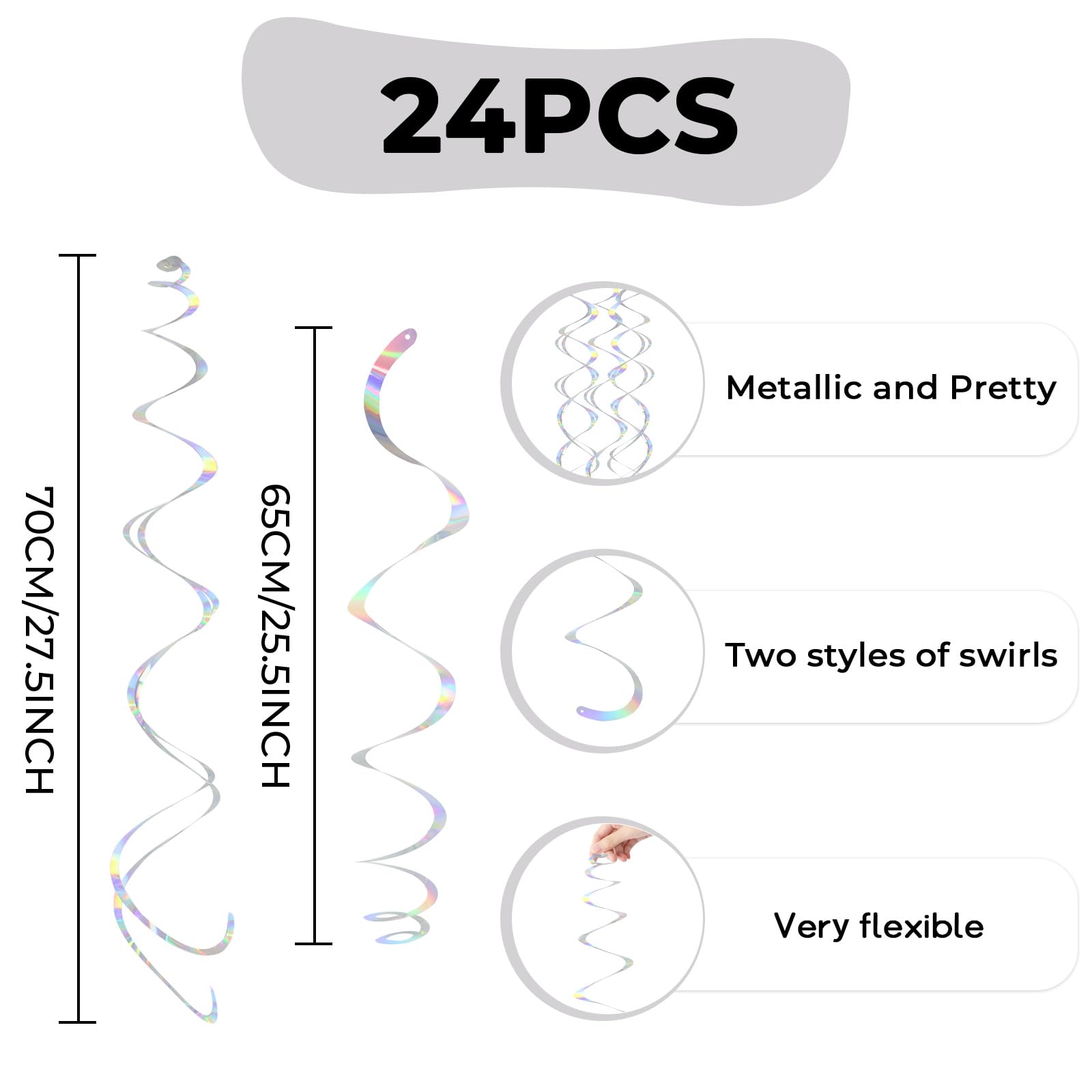 Shiny Material: The hanging swirl decorations are made of PVC material, which is not easy to tear, does not fade, is sturdy and reusable.