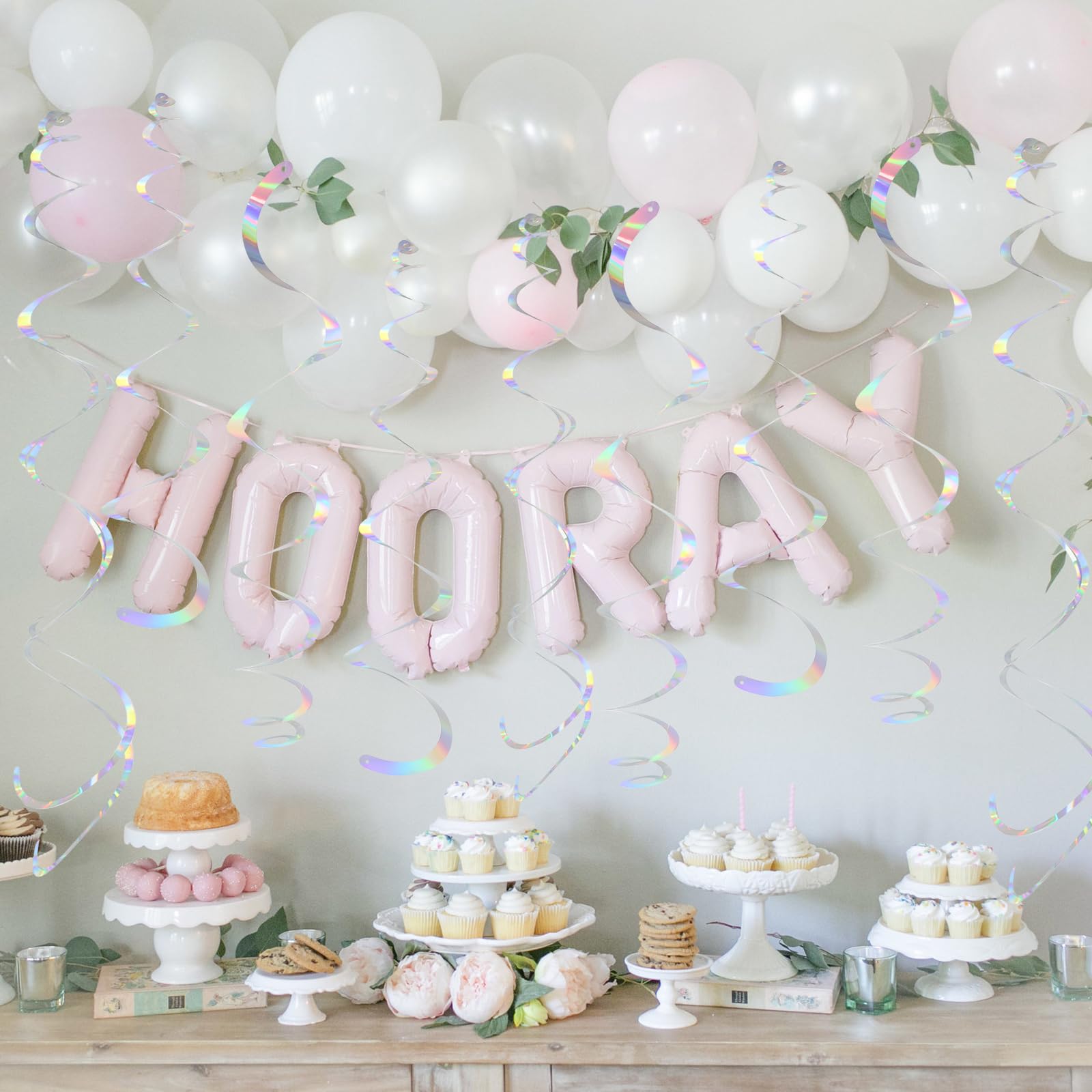 Assemble Easy: The Iridescent hanging swirls have a small ring on them, just tear the swirl slowly along the edge and hang it on the hook to complete a simple party decoration. Time saving and easy to operate.