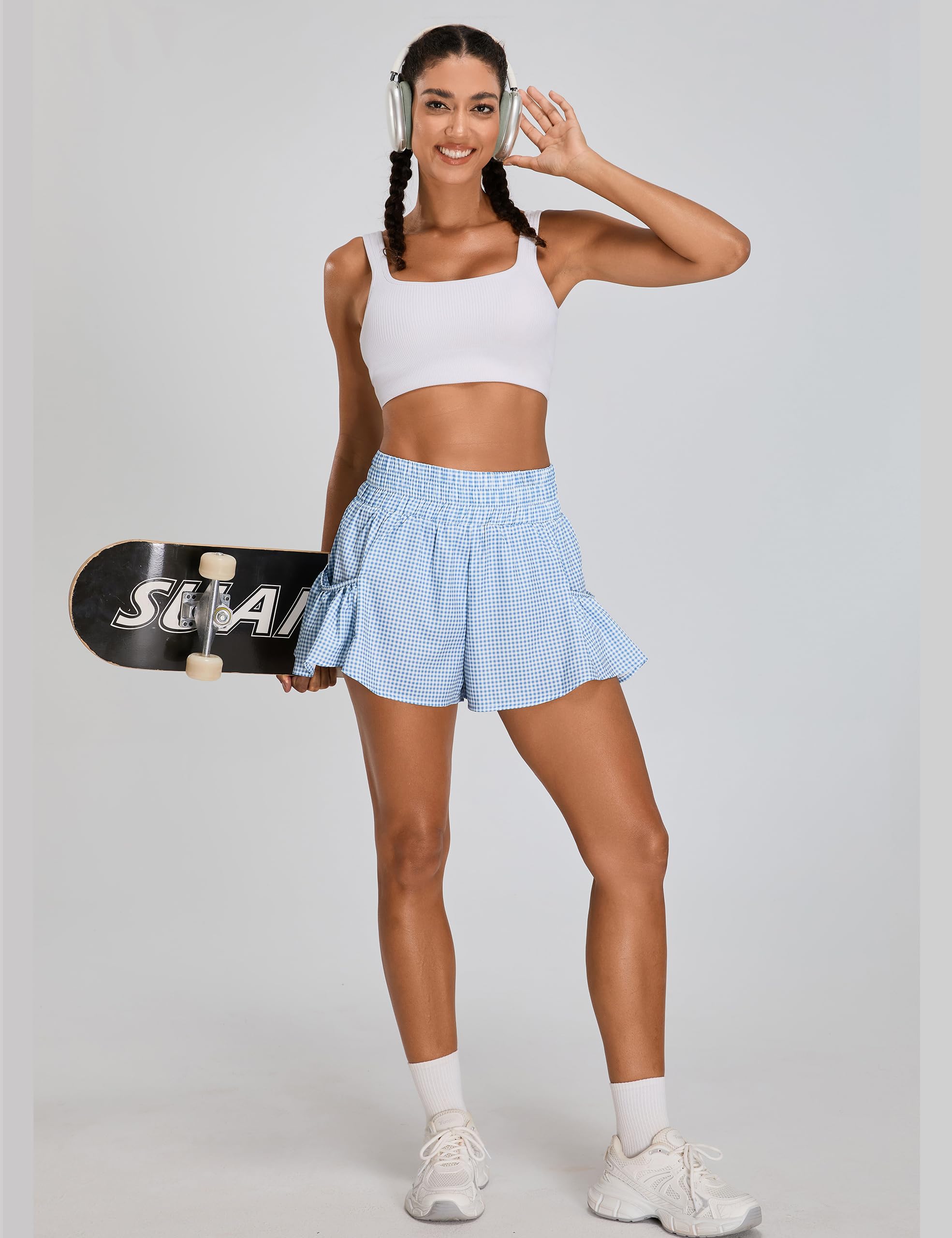 【Design】This gym shorts is featuBlue with Super High Waist, Cute Side Pockets, Loose Fit, Lightweight and Quick Dry Fabric