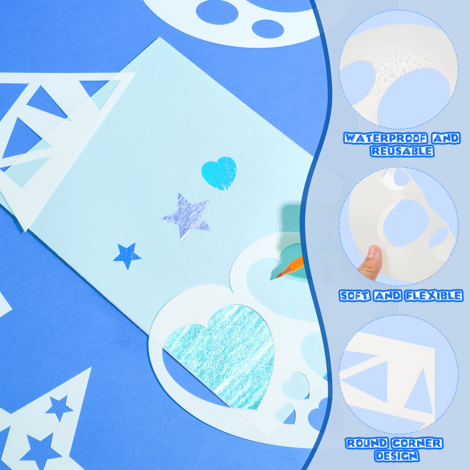 Keep for repeated use: the drawing stencil templates are made of quality PET (0.2 mm thickness), sturdy, not easy to break or deform, also easy to clean, can be taken for repeated uses for a long time, they are also light in weight and convenient to store, won't bring burdens to boys and girls when they carry them around