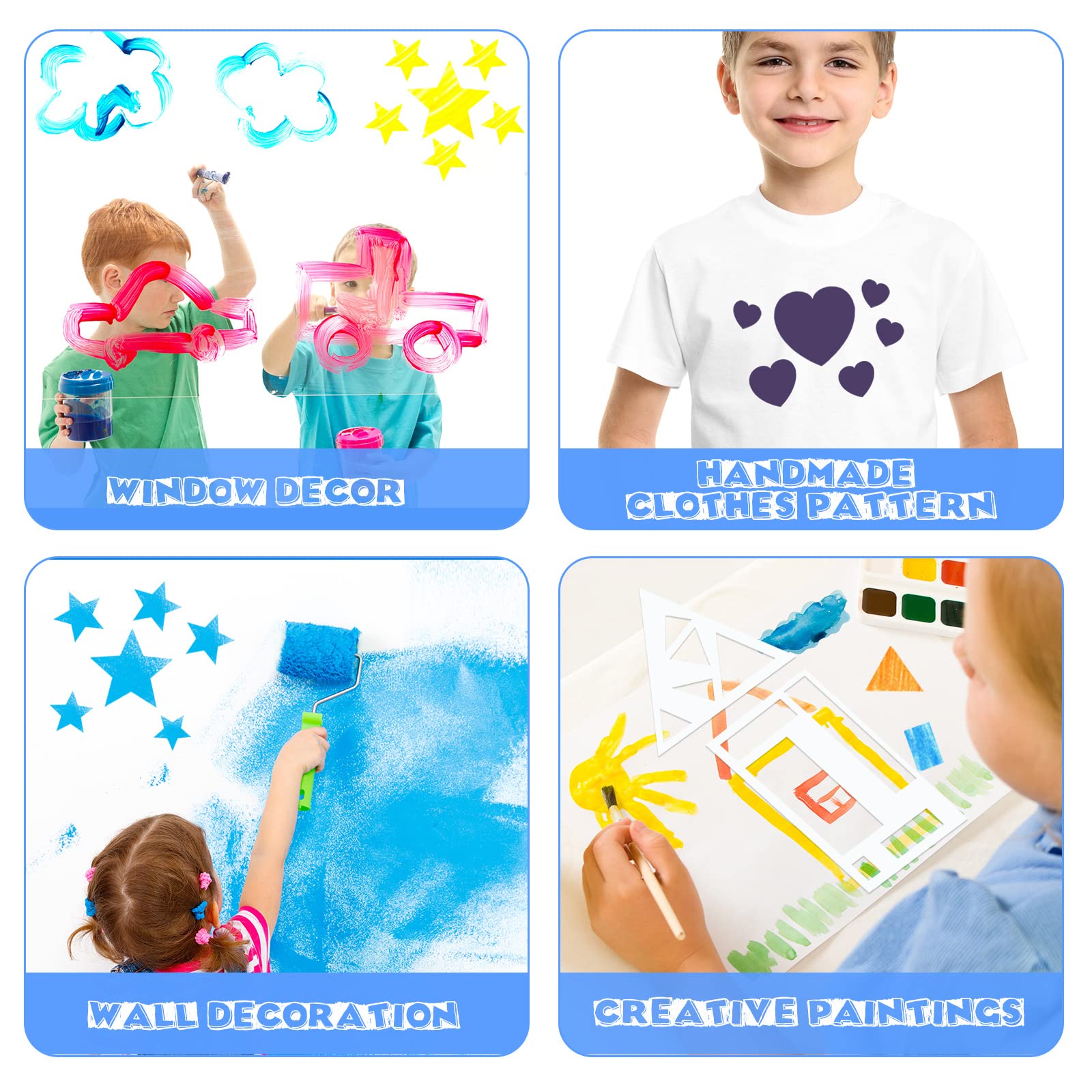 Suitable for kids: these art painting stencils are suitable for kids painting at home, school or playgroup, in which way you can get both kids' imagination and hands-on ability improved; They also provide multiple ways to use, you can apply them with chalks, felt tips or paint. Please note this product contains functional sharp corners and is not suitable for children under 3 years old