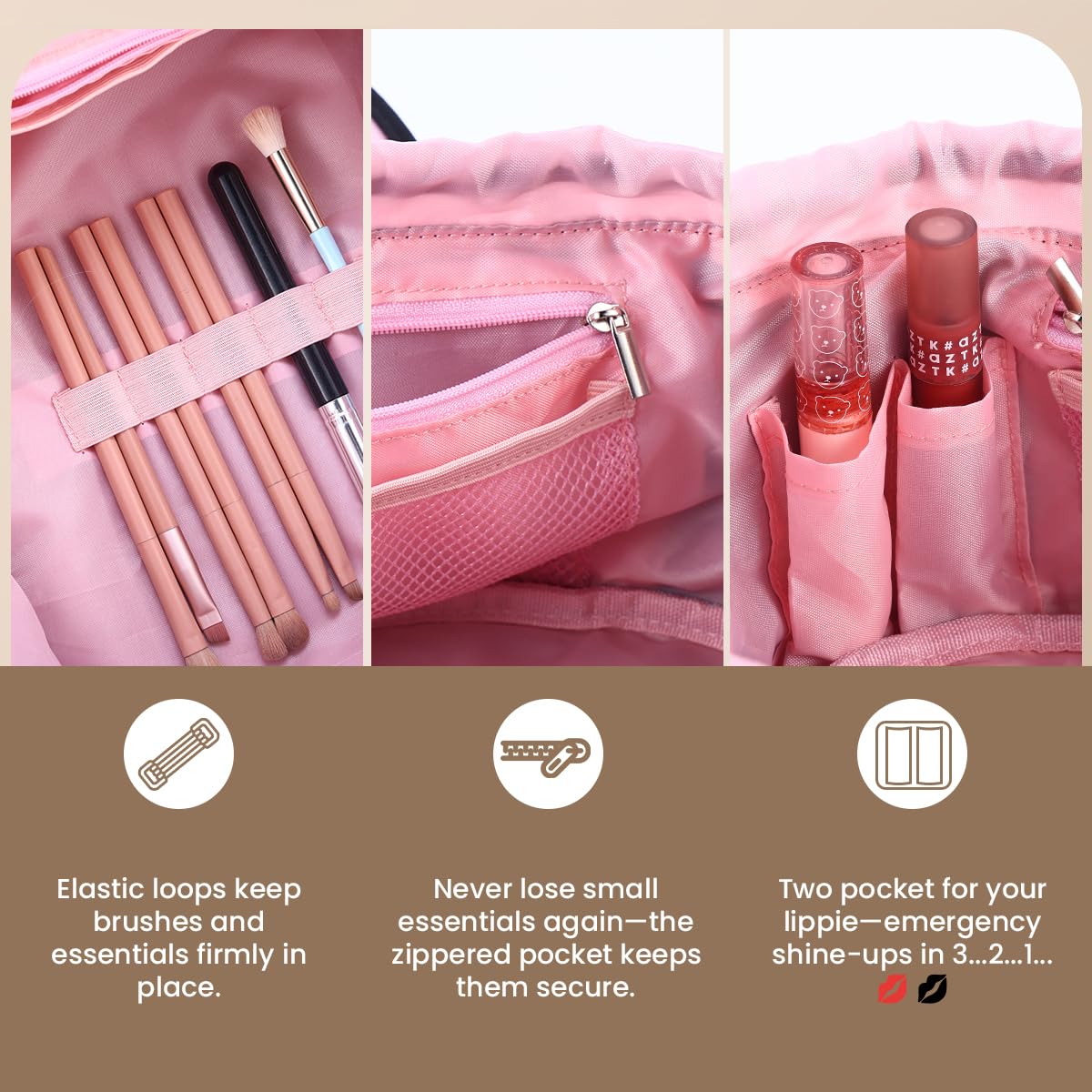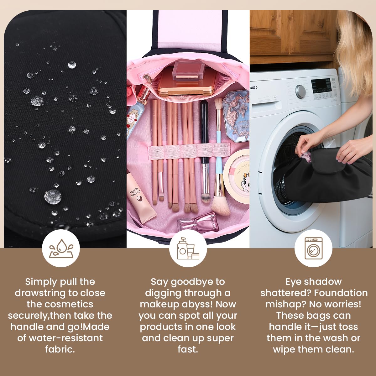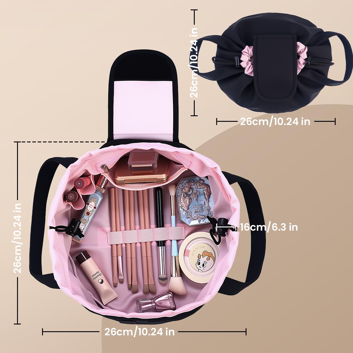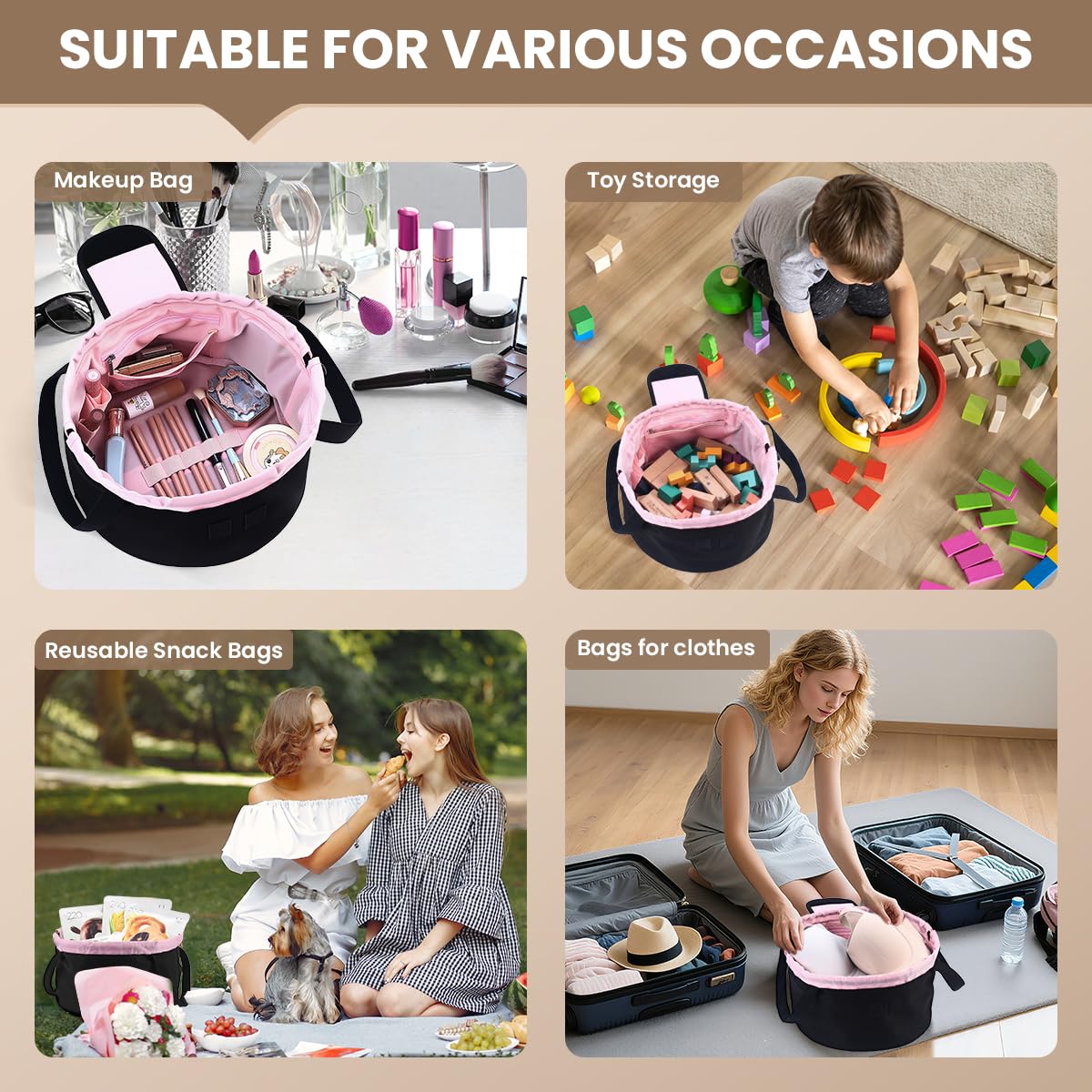 【Multi-Use Drawstring Makeup Bag】Wide opening design instantly organizes makeup,snacks or small toys.Barrel-like construction + double drawstrings secure items tightly–ideal as a reusable snack bag or toy storage organizer.