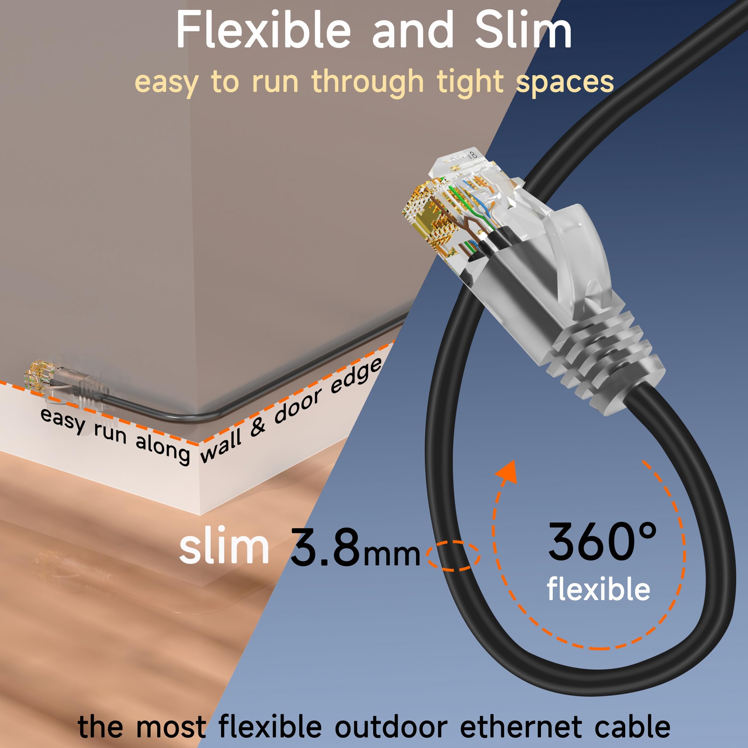 POE/POE++: Copper ultra-thin poe ethernet cable is compatible with POE/POE++ (Power over Ethernet), making cat 6 ethernet cable outdoor ideal for powering outdoor devices such as security cameras and access points.