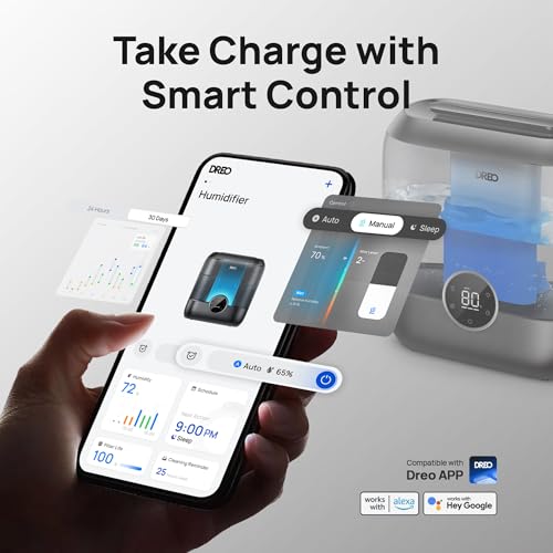 ððŠðĒðððððŪ ðūðĪðĢðĐð§ðĪðĄ, ðððð§ððŦðð§ ððĪðŠ ðžð§ð: Use the DREO app, voice commands, or Alexa to remotely manage your cool mist humidifiers for bedroom, Easily monitor indoor humidity and adjust settings to ensure a healthy environment for your family, especially suited for babies, pets and plants indoor.
