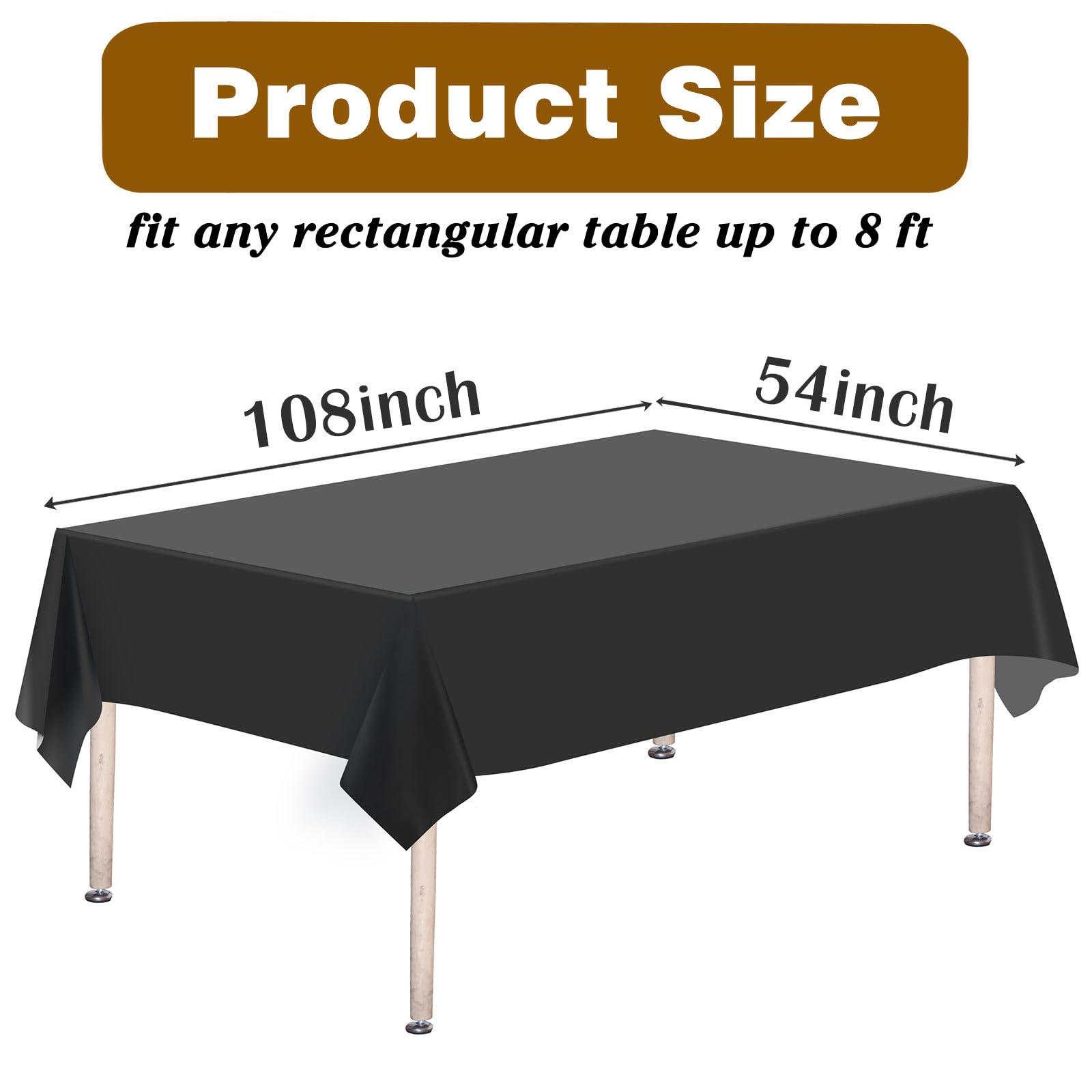 Package Includes: You will get 2 pieces plastic tablecloths. Our disposable plastic tablecloth measures 54" x 108", making it the ideal size to cover any table up to 8 ft.